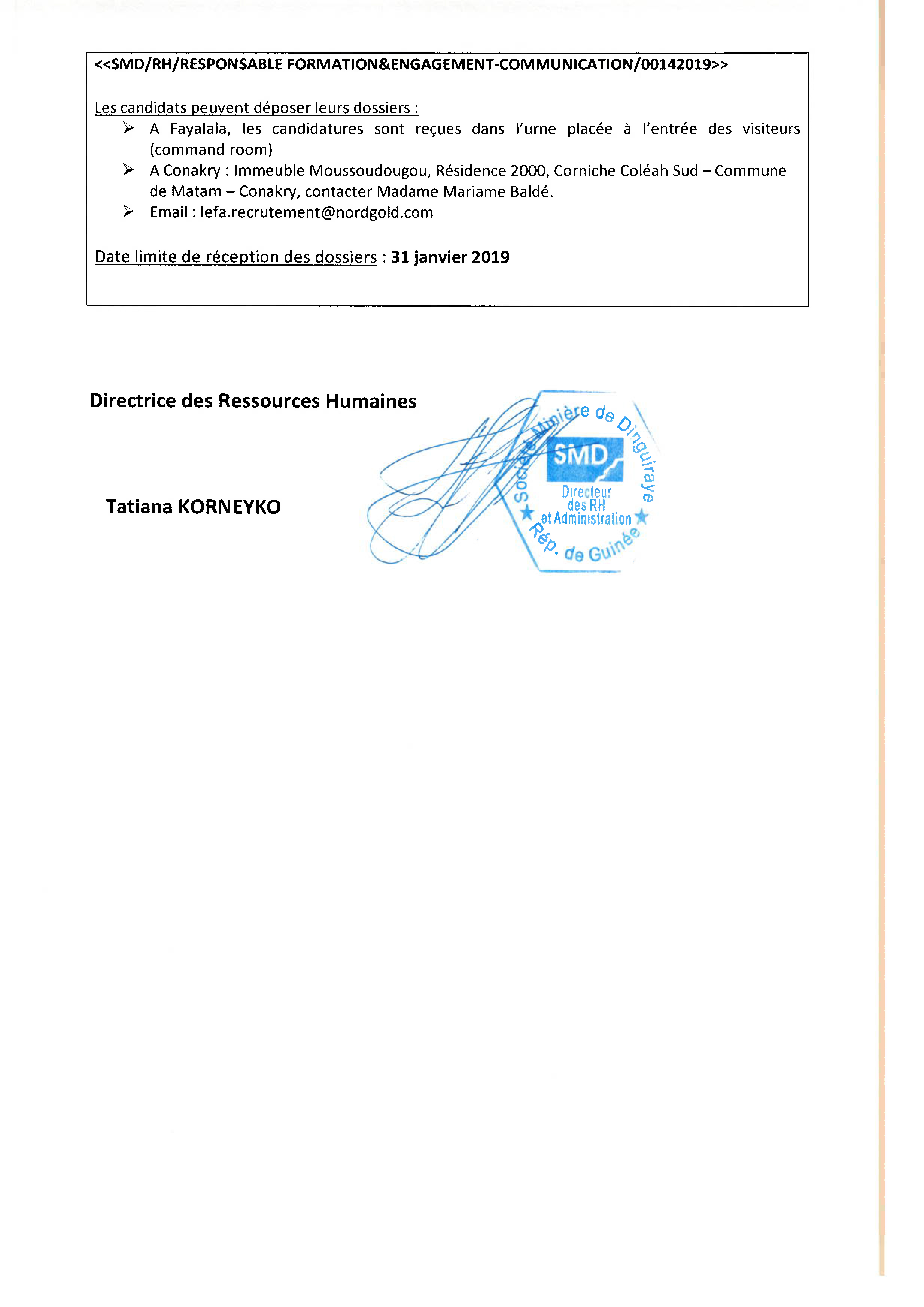 Non classé Nordgold-SMD recherche un responsable de formation et dâengagement Par Sékou Mohamed SAVANE - 21 janvier 2019 0 518 FacebookTwitterPinterestWhatsApp