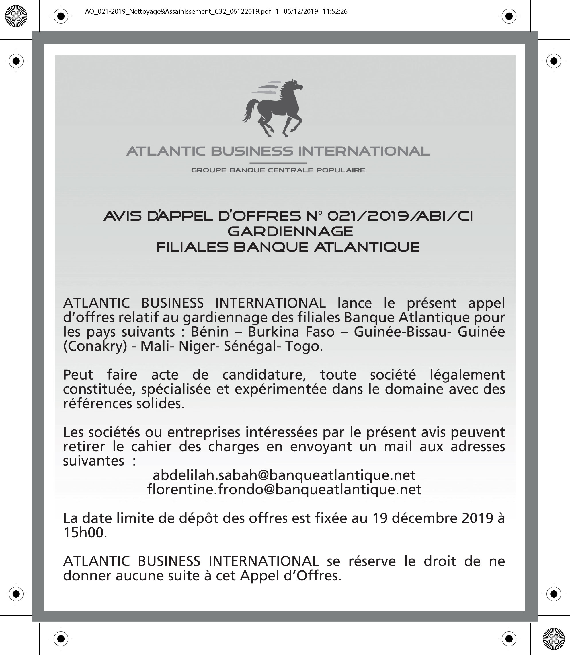 Appels d'offres RECRUTEMENT D ÃNE SOCIETE DE GARDIENNAGE Par Sékou Mohamed SAVANE - 9 décembre 2019 0 282 FacebookTwitterPinterestWhatsApp