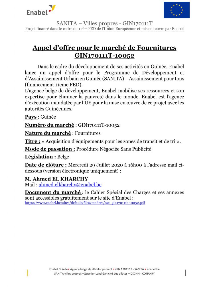 Appels d'offres Appel dâoffre pour le marché de Fournitures GIN170111T-10052 Par Sékou Mohamed SAVANE - 10 juillet 2020 0 309 FacebookTwitterPinterestWhatsApp