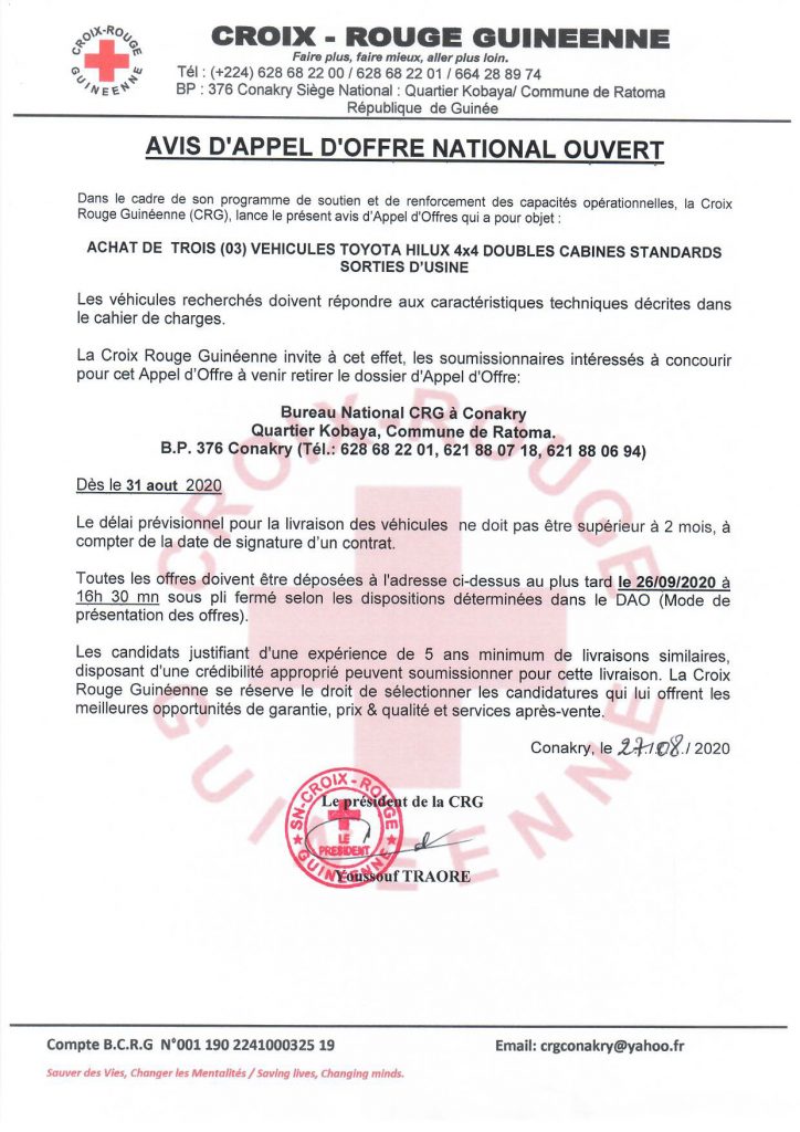 Appels d'offres APPEL D’OFFRE NATIONAL OUVERT Par Sékou Mohamed SAVANE - 2 septembre 2020 0 1284 FacebookTwitterPinterestWhatsApp
