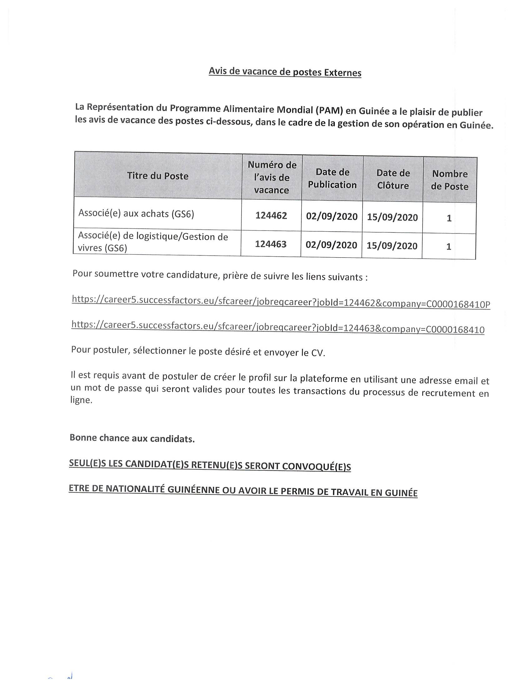 Opportunités d'emplois AVIS DE VACANCE DE POSTE Par Sékou Mohamed SAVANE - 2 septembre 2020 0 600 FacebookTwitterPinterestWhatsApp