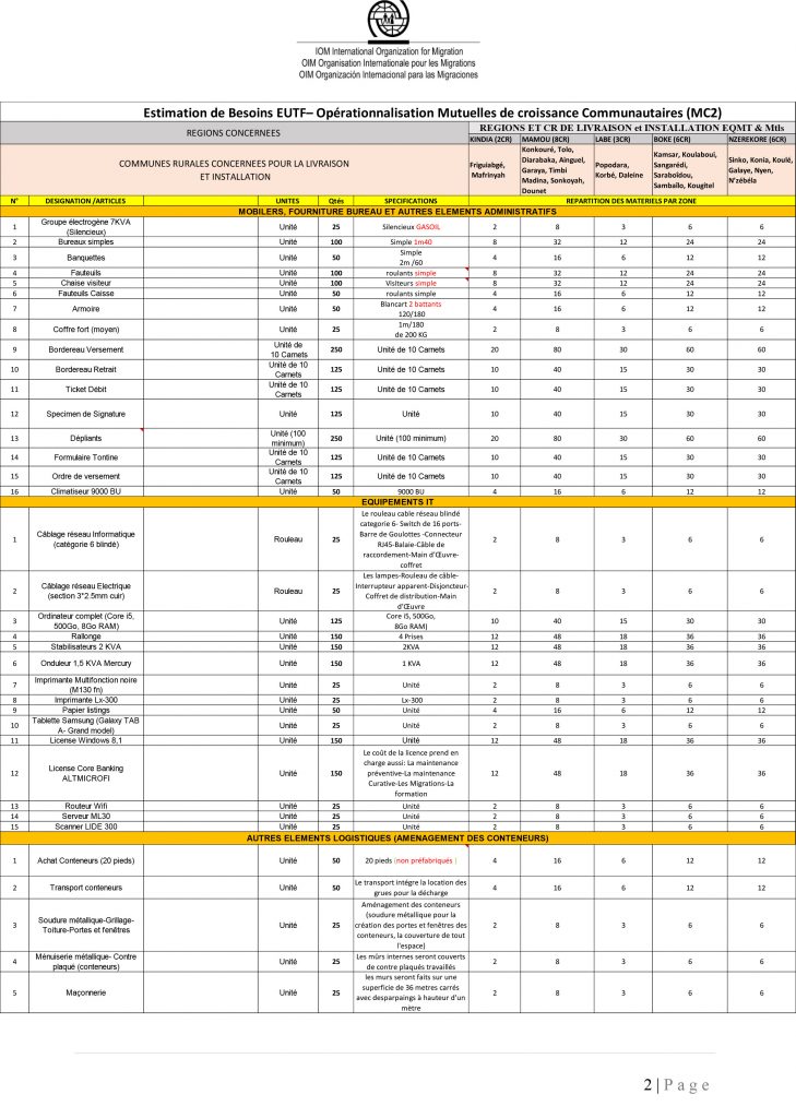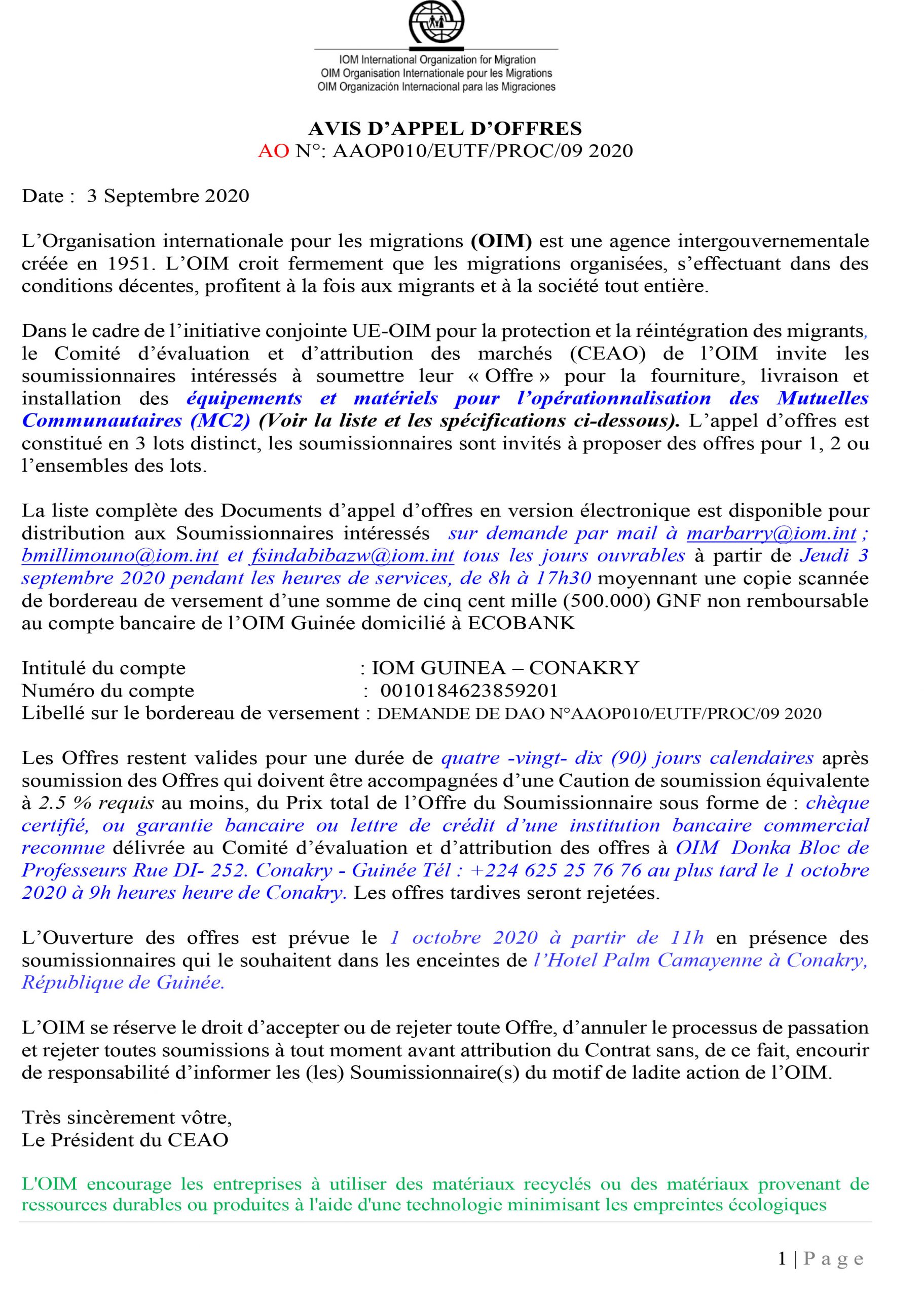 Appels d'offres Avis dâAppel dâOffre pour la fourniture, livraison et installation des équipements et matériels pour lâopérationnalisation des Mutuelles Communautaires (MC2) Par Sékou Mohamed SAVANE - 3 septembre 2020 0 477 FacebookTwitterPinterestWhatsApp