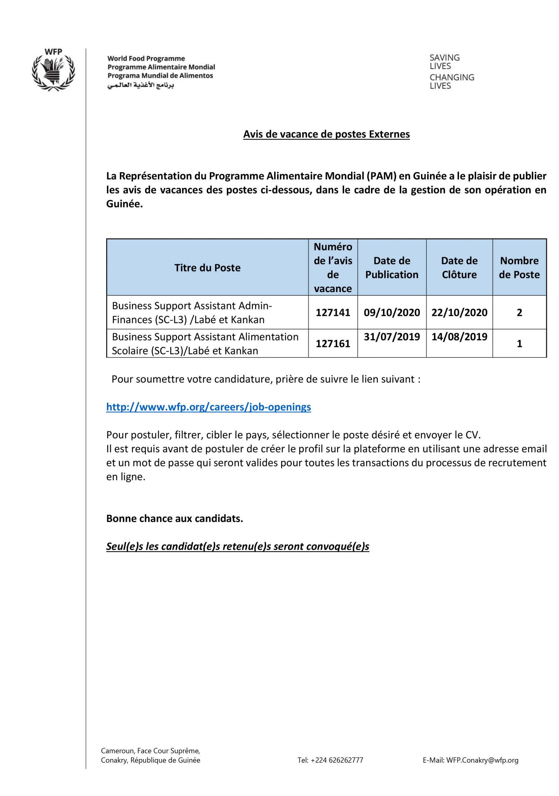 Opportunités d'emplois Avis de vacance de postes Externes Par Sékou Mohamed SAVANE - 9 octobre 2020 0 442 FacebookTwitterPinterestWhatsApp