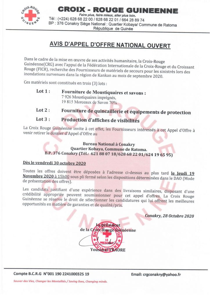 Appels d'offres AVIS D’APPEL D’OFFRE NATIONAL OUVERT POUR LA FOURNITURE DE ….. Par Sékou Mohamed SAVANE - 30 octobre 2020 0 643 FacebookTwitterPinterestWhatsApp