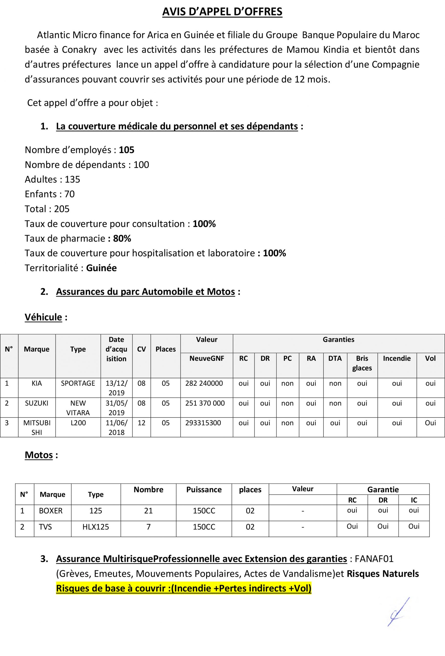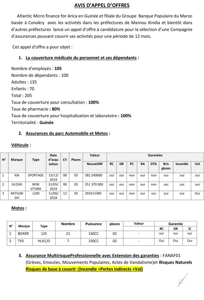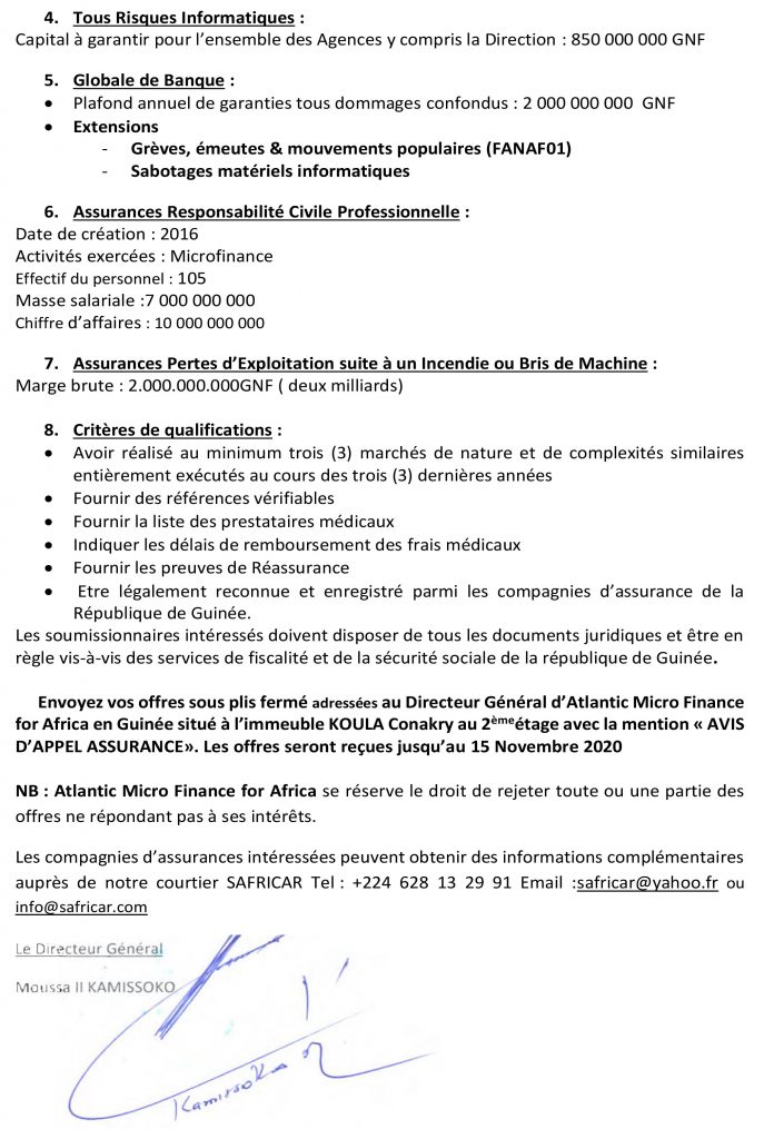 Appels d'offres AVIS D’APPEL D’OFFRES POUR LA SELECTION D’UNE COMPAGNIE D’ASSURANCES… Par Sékou Mohamed SAVANE - 30 octobre 2020 0 462 FacebookTwitterPinterestWhatsApp