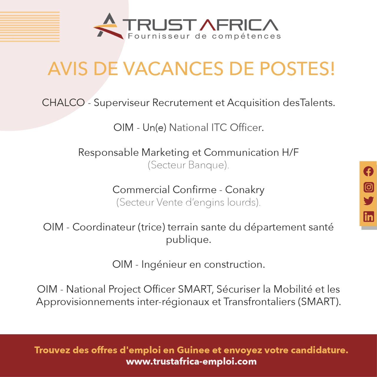 Opportunités d'emplois AVIS DE VACANCES DE POSTES Par Sékou Mohamed SAVANE - 2 décembre 2020 0 478 FacebookTwitterPinterestWhatsApp