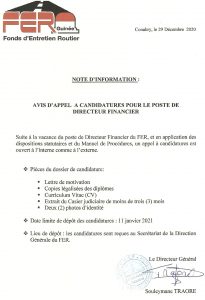 Opportunités d'emplois AVIS DâAPPEL A CANDIDATURES POUR LE POSTE DE DIRECTEUR FINANCIER Par Sékou Mohamed SAVANE - 4 janvier 2021 0 416 FacebookTwitterPinterestWhatsApp