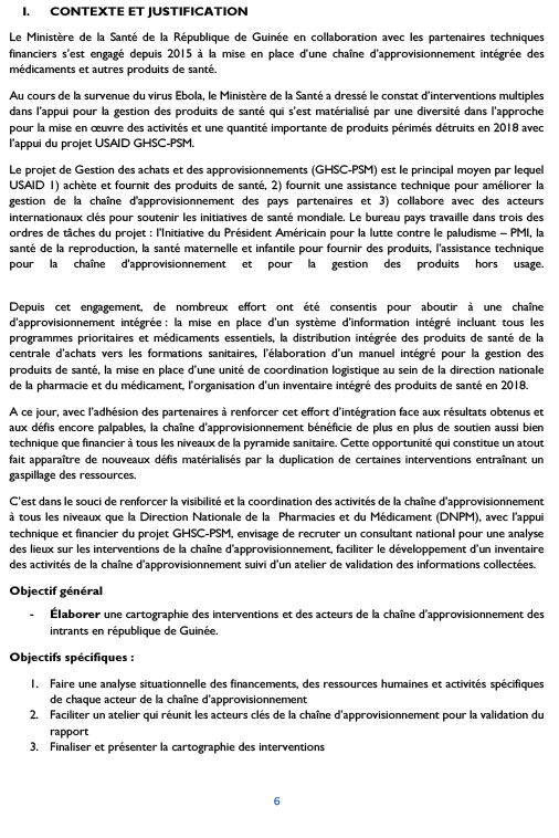 Appels d'offres AVIS DE RECRUTEMENT DâUN CONSULTANT POUR LA CARTOGRAPHIE DES INTERVENTIONS DES ACTEURS DANS LA CHAINE DâAPPROVISIONNEMENT EN GUINÃE Par Sékou Mohamed SAVANE - 19 avril 2021 0 338 FacebookTwitterPinterestWhatsApp