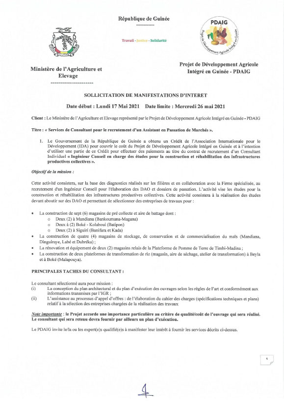 Appels d'offres SOLLICITATION DE MANIFESTATIONS DâINTERET « Services de Consultant pour le recrutement dâun Assistant en Passation de Marchés ». Par Sékou Mohamed SAVANE - 17 mai 2021 0 367 FacebookTwitterPinterestWhatsApp