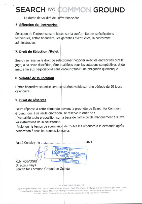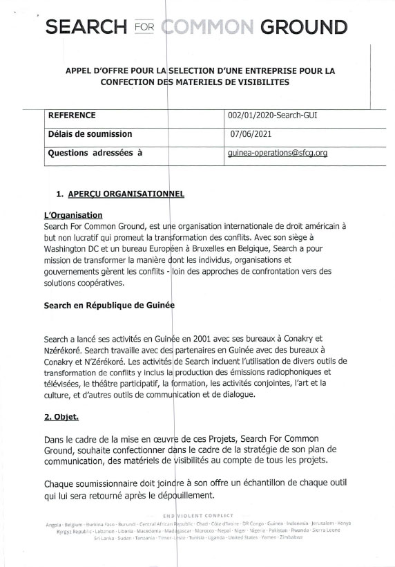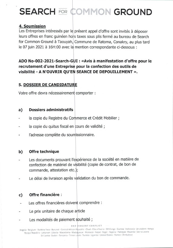 Appels d'offres APPEL DâOFFRE POUR LA SELECTION DâUNE ENTREPRISE POUR LA CONFECTION DES MATERIELS DE VISIBILITES Par Sékou Mohamed SAVANE - 27 mai 2021 0 309 FacebookTwitterPinterestWhatsApp