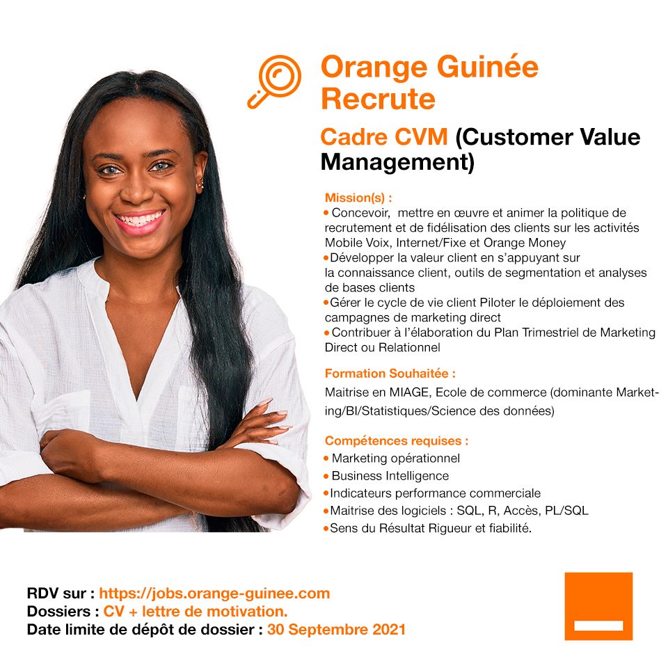 Opportunités d'emplois RECRUTEMENT CADRE CVM (CUSTOMER VALUE MANAGEMENT) Par Sékou Mohamed SAVANE - 20 septembre 2021 0 4320 FacebookTwitterPinterestWhatsApp