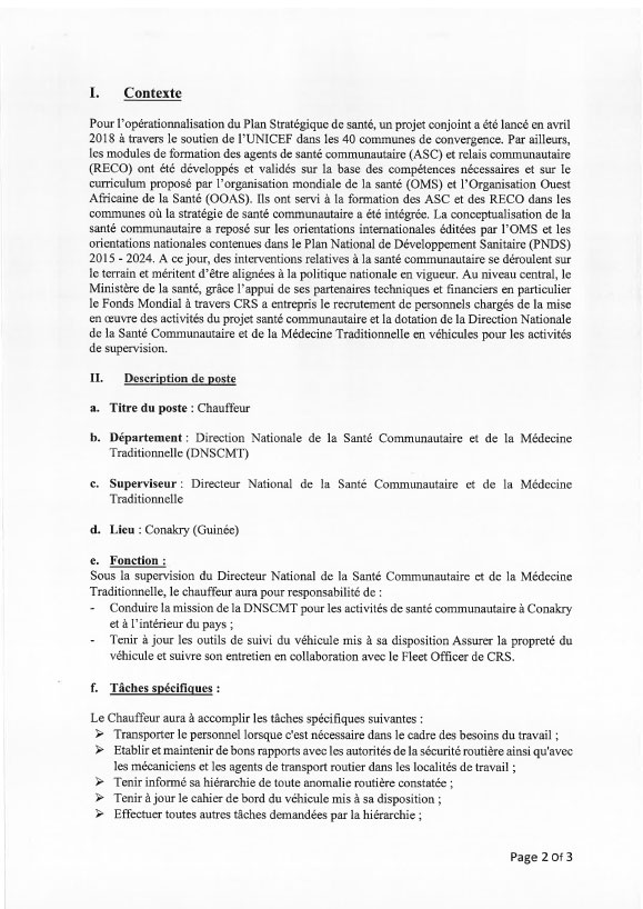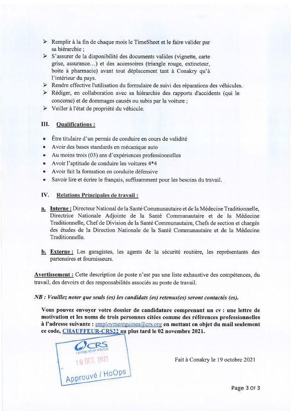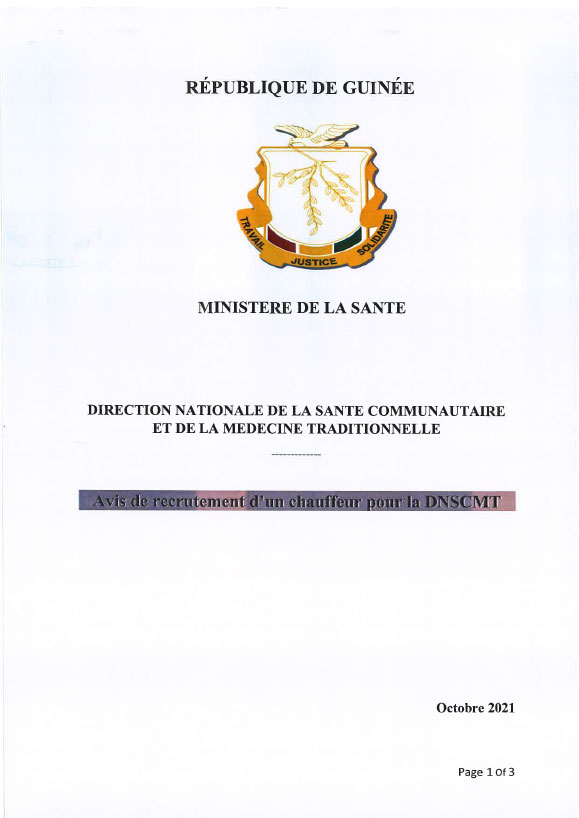 Opportunités d'emplois CRS recrute un chauffeur pour la Direction Nationale de la Santé Communautaire et de la Médecine Traditionnelle Par Sékou Mohamed SAVANE - 20 octobre 2021 0 841 FacebookTwitterPinterestWhatsApp