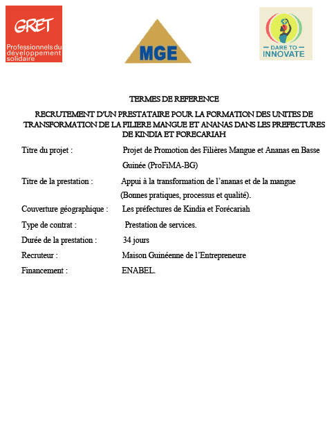 Accueil Appels d'offres TERMES DE REFERENCE POUR LE RECRUTEMENT DâUN PRESTATAIRE POUR LA FORMATION DES...