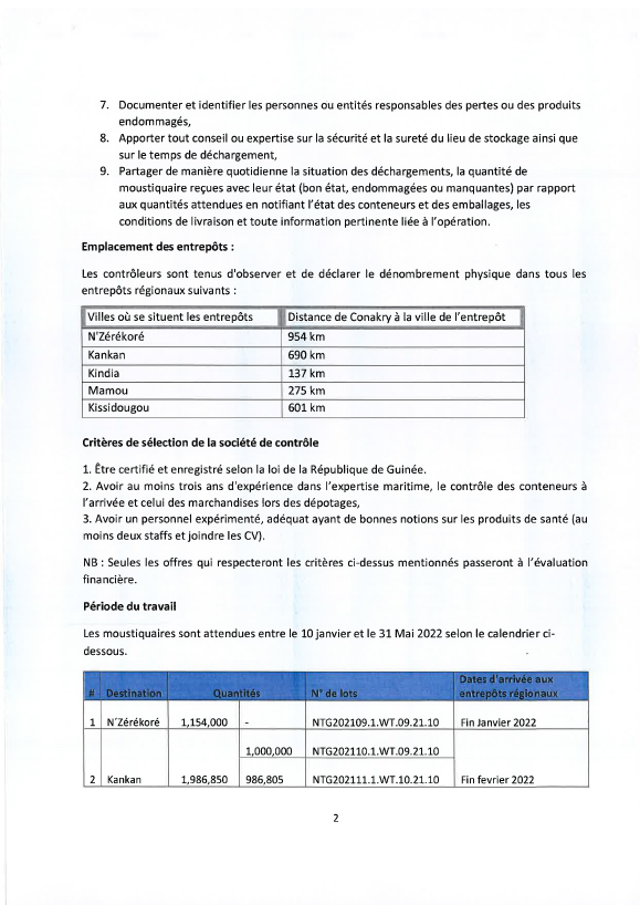 Appels d'offres CRS recrute une entreprise devant inspecter et compter les ballots de moustiquaires qui sont attendus au port de Conakry Par Sékou Mohamed SAVANE - 16 décembre 2021 0 304 FacebookTwitterPinterestWhatsApp