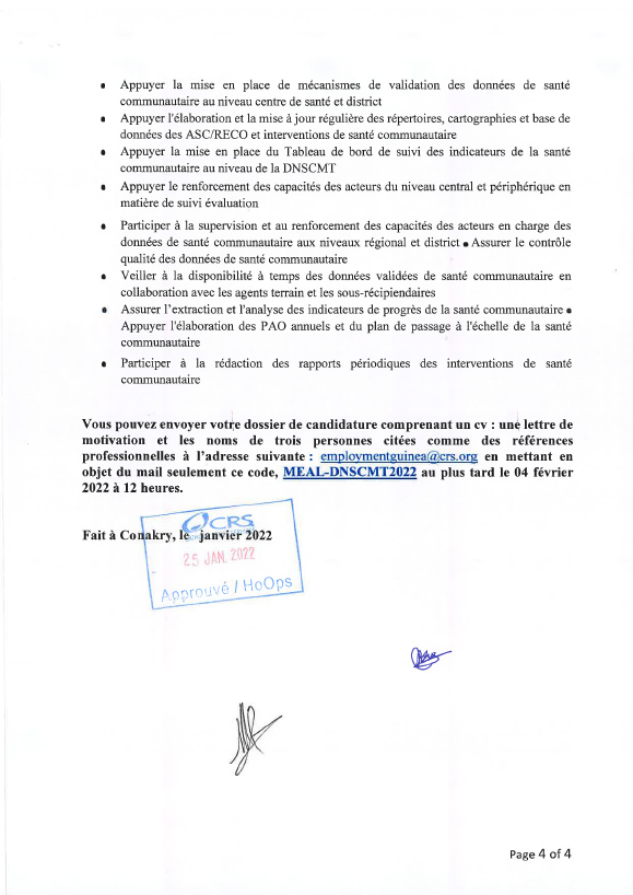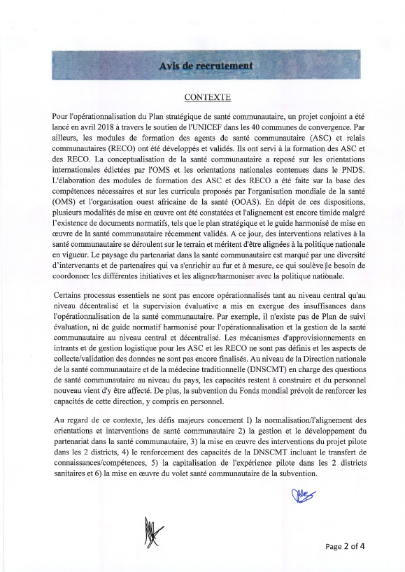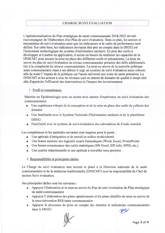 Opportunités d'emplois Recrutement dâun(e) chargé(e) de Suivi Evaluation pour la Direction Nationale de la Santé Communautaire de la Médecine Traditionnelle Par Sékou Mohamed SAVANE - 28 janvier 2022 0 883 FacebookTwitterPinterestWhatsApp