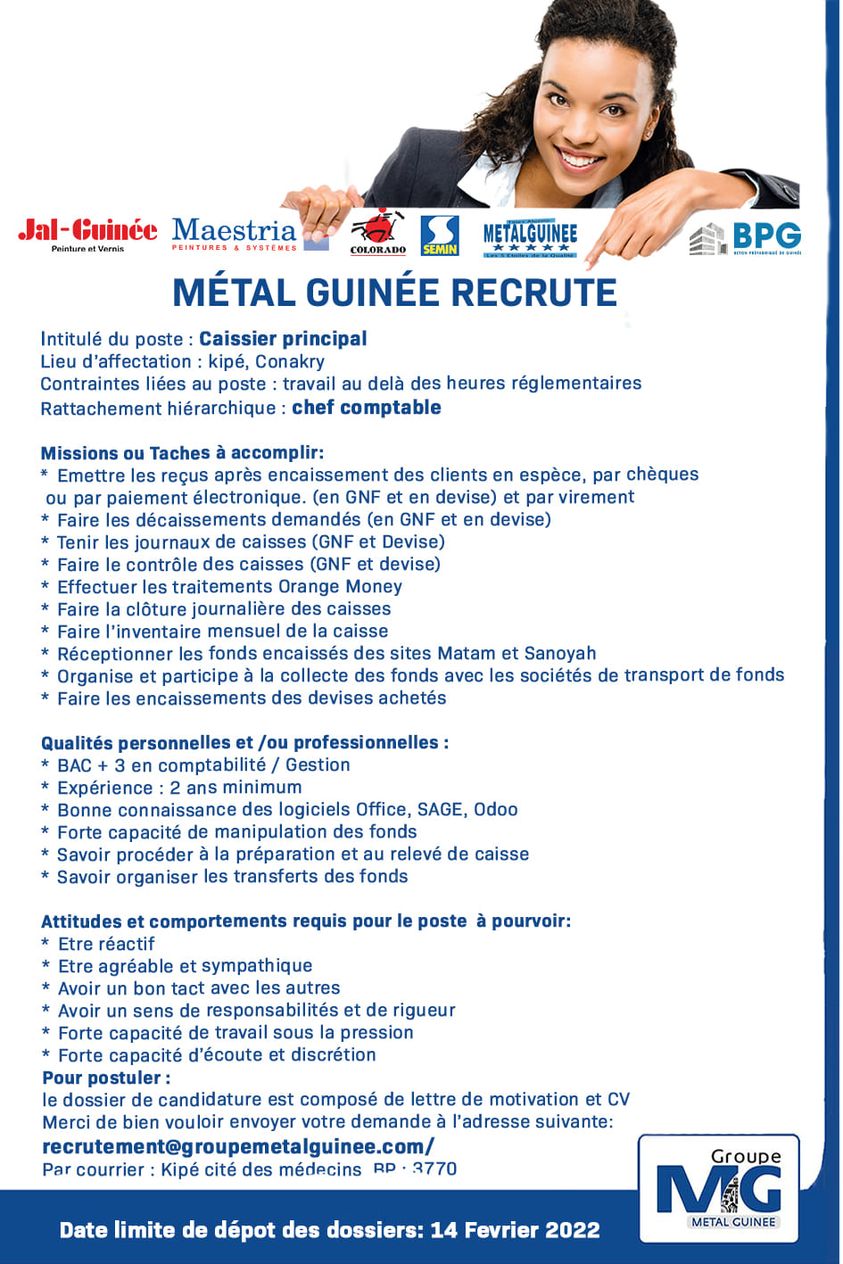 Opportunités d'emplois METAL GUINEE RECRUTE Par Sékou Mohamed SAVANE - 1 février 2022 0 697 FacebookTwitterPinterestWhatsApp
