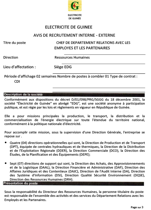 Opportunités d'emplois AVIS DE CHEF DE DEPARTEMENT RELATIONS AVEC LES EMPLOYES ET LES PARTENAIRES Par Sékou Mohamed SAVANE - 7 février 2022 0 259 FacebookTwitterPinterestWhatsApp