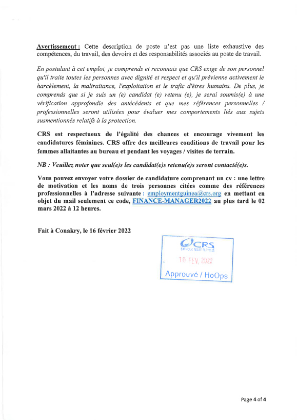 Opportunités d'emplois CRS recrute un(e) Directeur/Directrice des Finances Par Sékou Mohamed SAVANE - 18 février 2022 0 944 FacebookTwitterPinterestWhatsApp