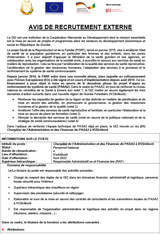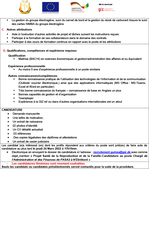 Opportunités d'emplois Avis de recrutement d’un(e) Chargé(e) de lâAdministration et des Finances de PASA2 Par Sékou Mohamed SAVANE - 9 mars 2022 0 569 FacebookTwitterPinterestWhatsApp