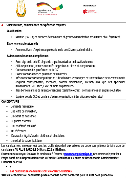 Opportunités d'emplois Avis de recrutement d’un Responsable Administratif.ve et Financier.ère de PSRF Par Sékou Mohamed SAVANE - 9 mars 2022 0 424 FacebookTwitterPinterestWhatsApp Z
