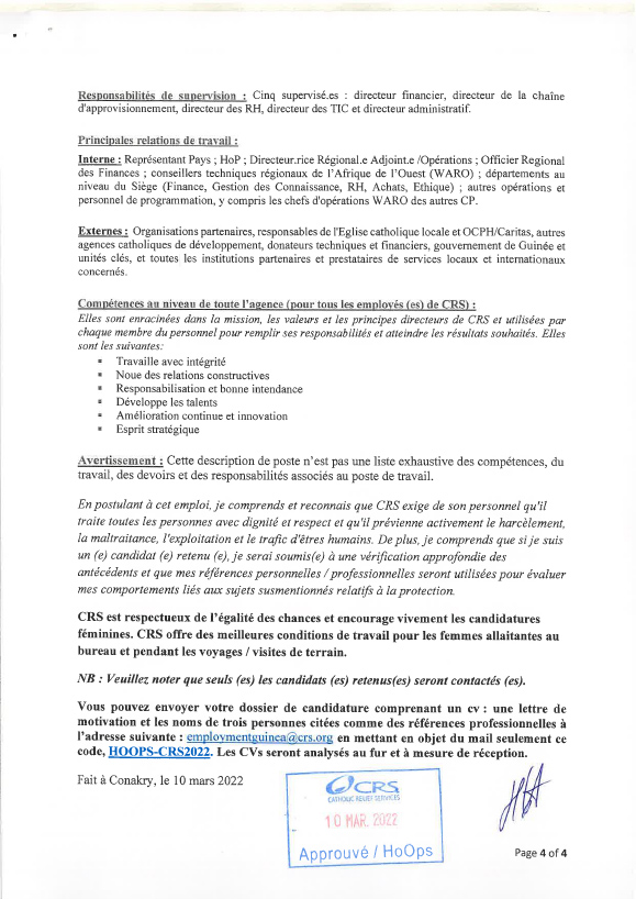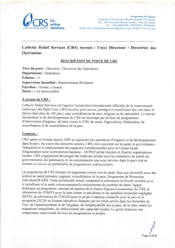 Opportunités d'emplois CRS recrute un(e) Directeur (trice) des Opérations pour CRS Guinée Par Sékou Mohamed SAVANE - 11 mars 2022 0 659 FacebookTwitterPinterestWhatsApp