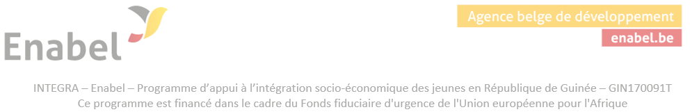 Dans le cadre du développement de ses activités en Guinée, Enabel lance un appel dâoffre pour le Programme dâappui à lâintégration socio-économique des jeunes (financement du Fonds Fiduciaire dâUrgence de lâUE pour lâAfrique).