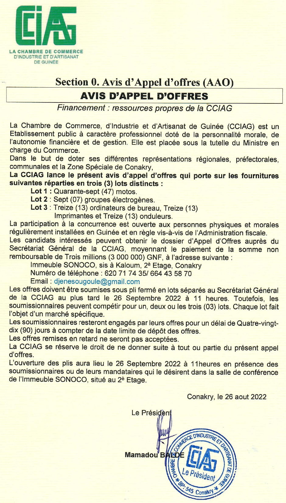 Appels d'offres Avis d’appel d’offres portant sur les fournitures suivantes réparties en trois (3) lots distincts Par Sékou Mohamed SAVANE - 29 août 2022 0 386 FacebookTwitterPinterestWhatsApp
