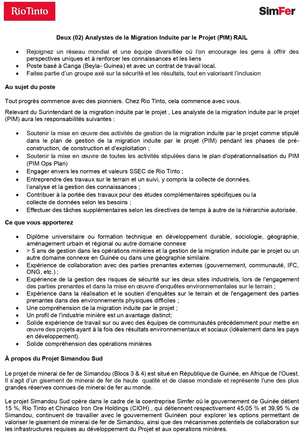 Opportunités d'emplois Avis de recrutement de Deux (02) Analystes de la Migration Induite par le Projet (PIM) RAIL Par Sékou Mohamed SAVANE - 18 novembre 2022 0 155 FacebookTwitterPinterestWhatsApp