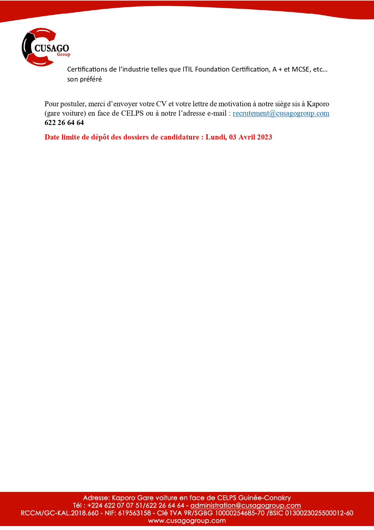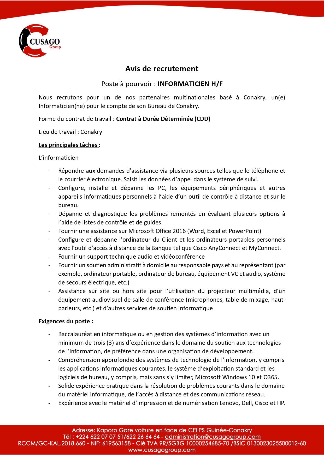 Opportunités d'emplois AVIS DE RECRUTEMENT D’UN INFORMATICIEN H/F Par Sékou Mohamed SAVANE - 27 mars 2023 0 151 FacebookTwitterPinterestWhatsApp