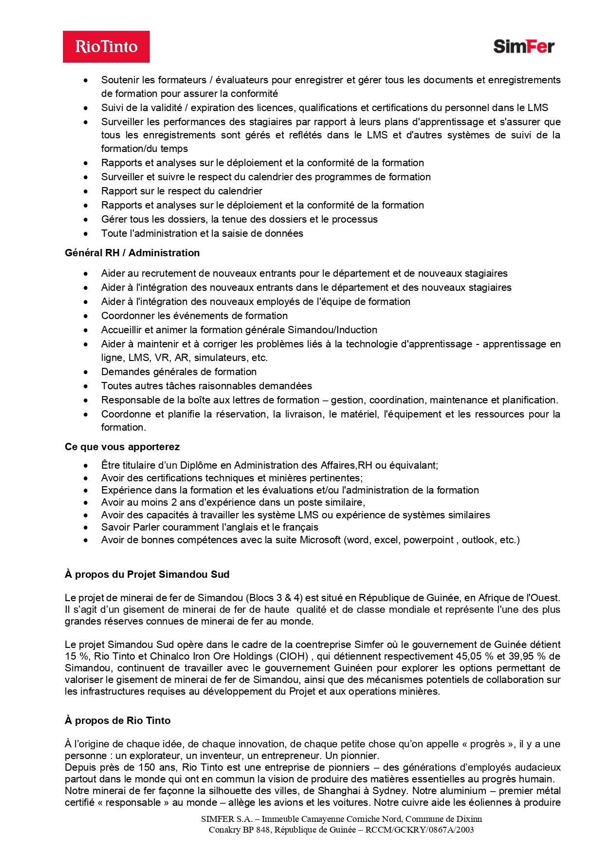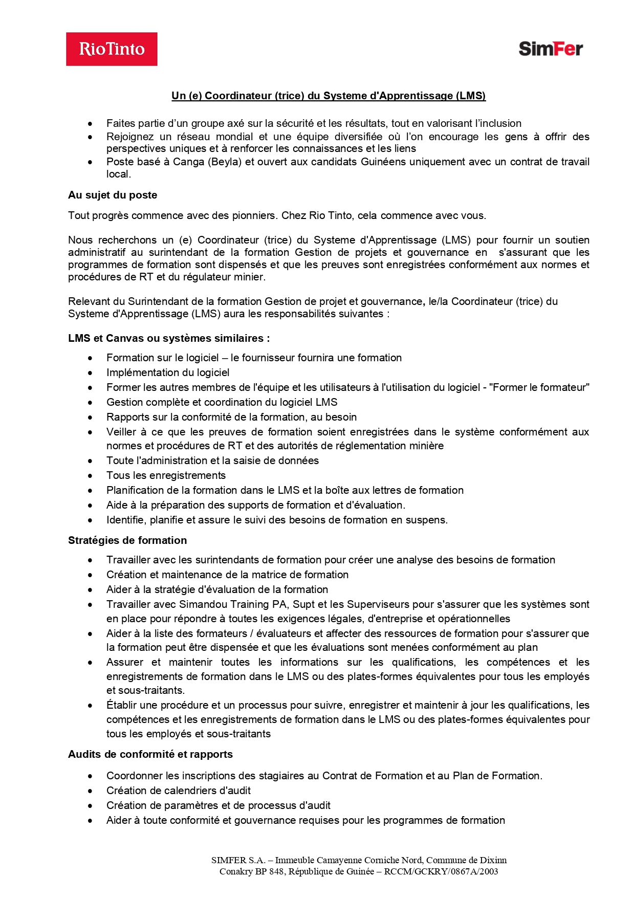 Posez votre candidature dès aujourd’hui : CV + lettre de motivation dans les boites aux lettres de Simfer à Beyla ou en cliquant sur le lien suivant :