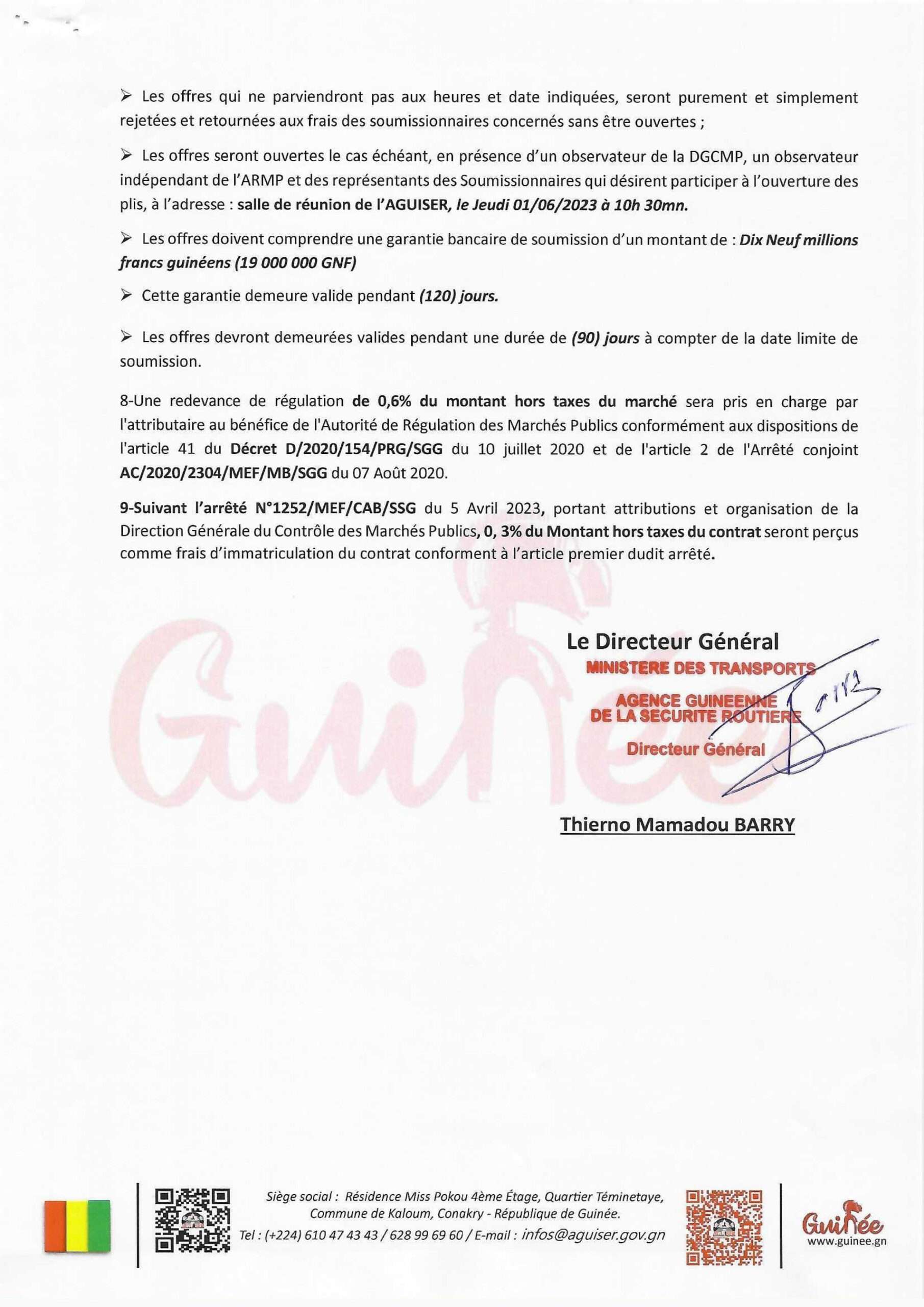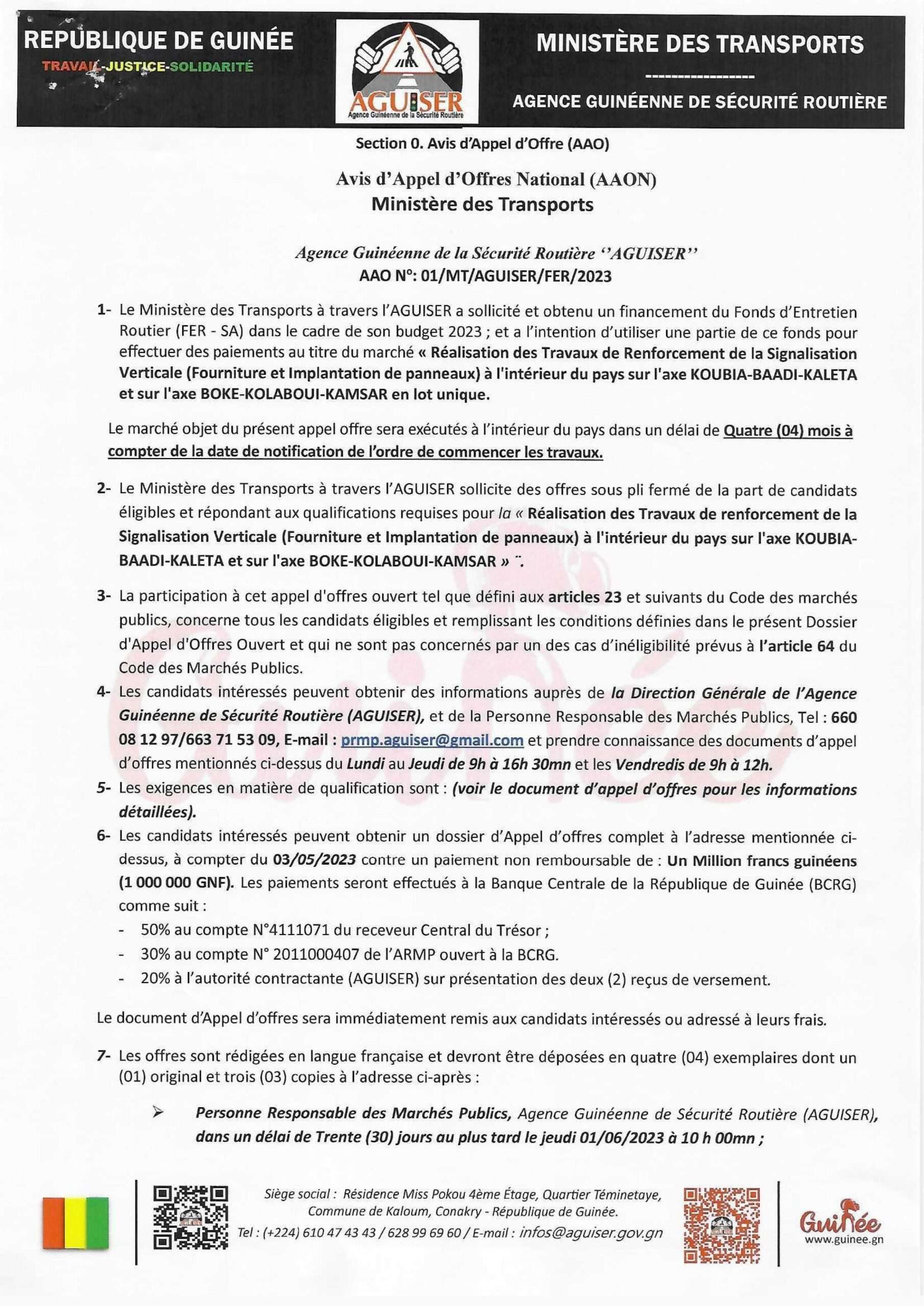 Appels d'offres AVIS D’APPEL D’OFFRES AAO N : 01/MT/AGUISER/FER/2023 REALISATION DES TRAVAUX DE RENFORCEMENT DE LA SIGNALISATION VERTICALE……….. Par Sékou Mohamed SAVANE - 3 mai 2023 0 356 FacebookTwitterPinterestWhatsApp