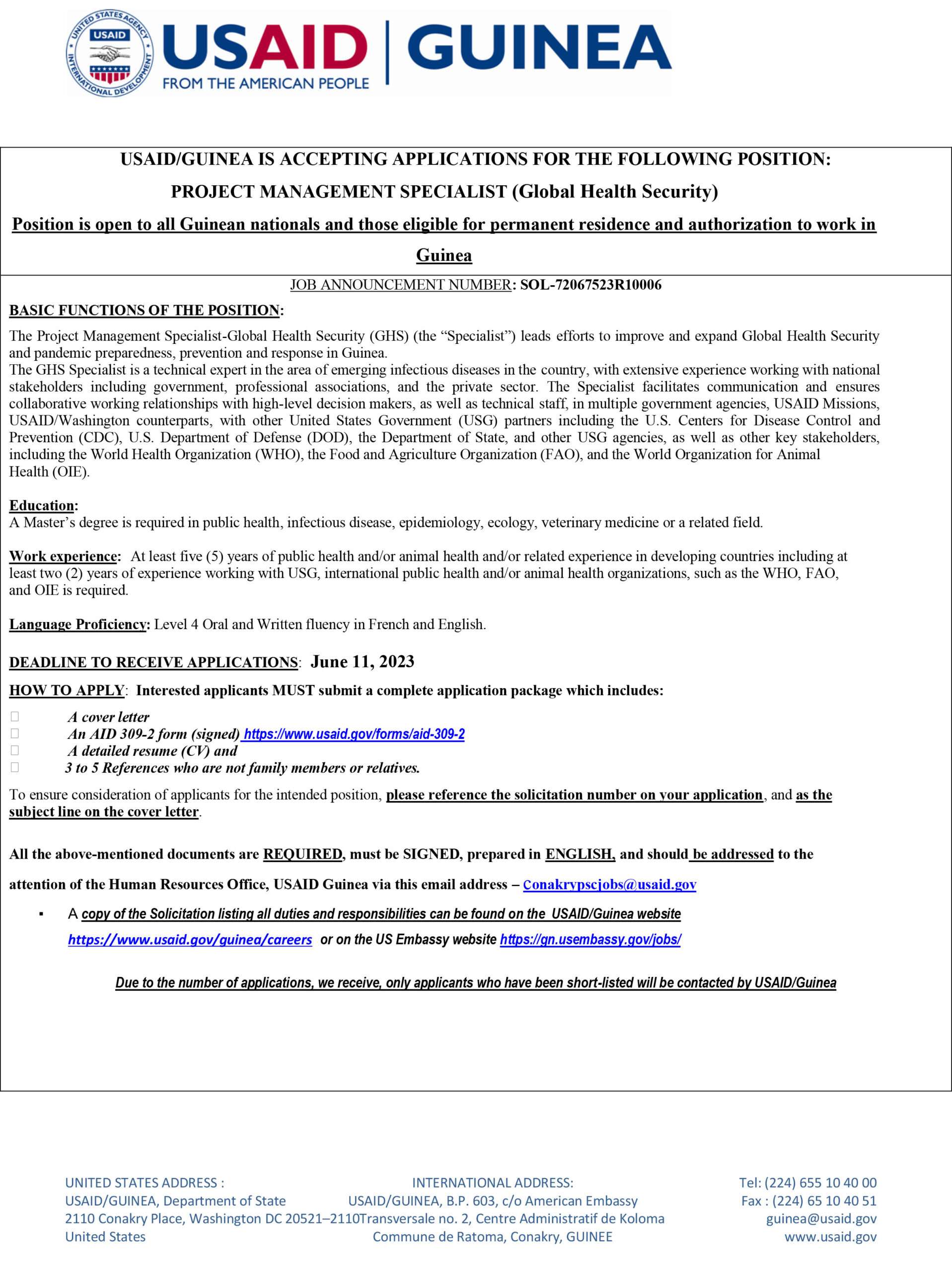 Opportunités d'emplois AVIS DE RECRUTEMENT PROJECT MANAGEMENT SPECIALIST (Global Health Security) Par Sékou Mohamed SAVANE - 11 mai 2023 0 351 FacebookTwitterPinterestWhatsApp