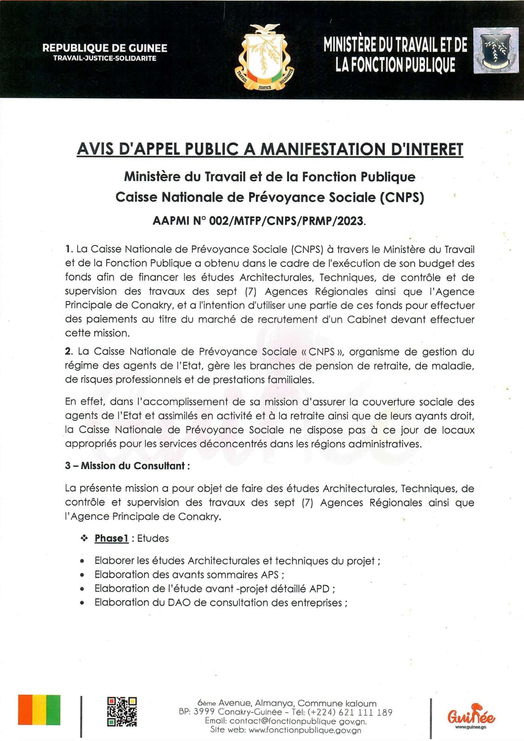 Appels d'offres AVIS D’APPEL PUBLIC A MANIFESTATION D’INTERET Caisse Nationale de Prévoyance Sociale (CNPS) AAPMI N° 002/MTFP/CNPS/PRMP/2023. Par Sékou Mohamed SAVANE - 15 mai 2023 0 261 FacebookTwitterPinterestWhatsApp