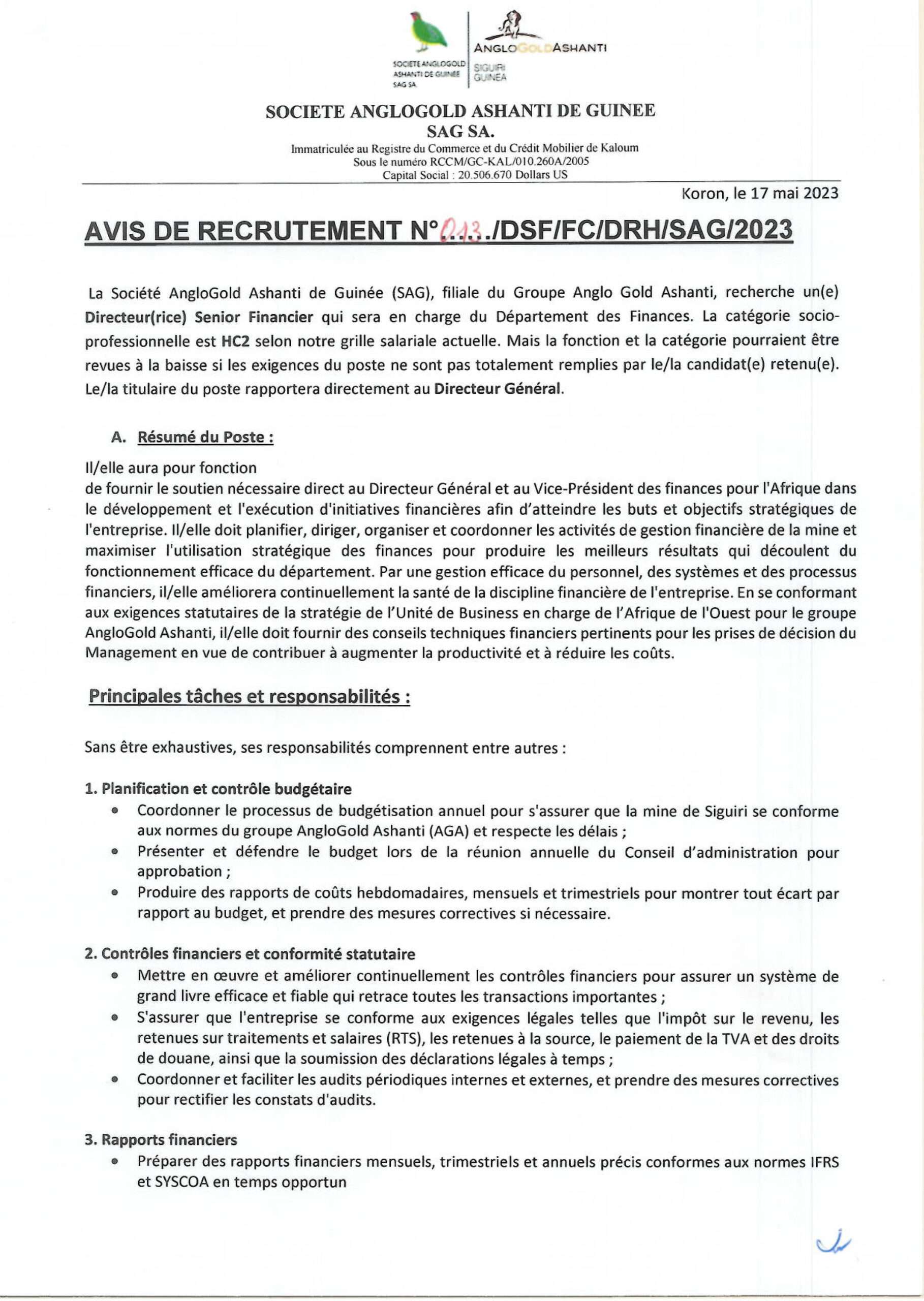 Opportunités d'emplois Avis de recrutement d’un(e) Directeur (rice) Senior Financier Par Sékou Mohamed SAVANE - 18 mai 2023 0 176 FacebookTwitterPinterestWhatsApp