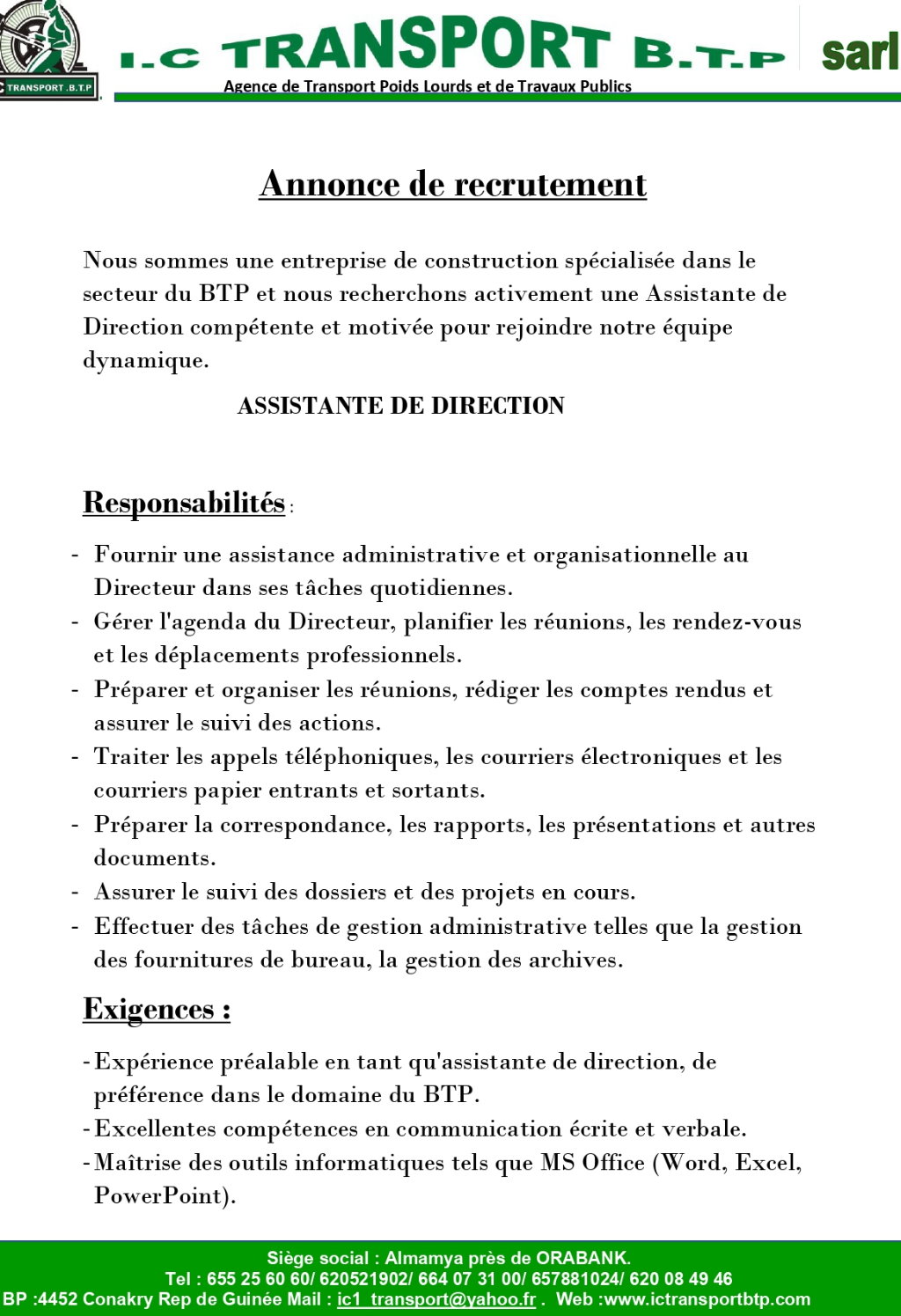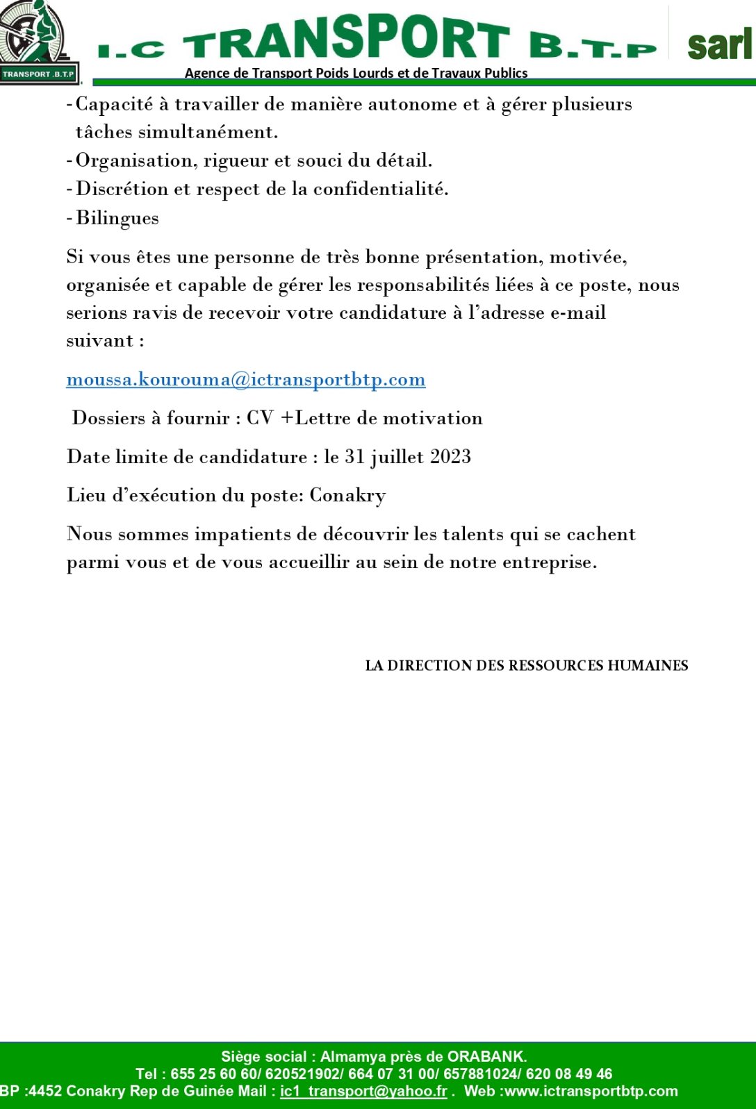 Opportunités d'emplois AVIS DE RECRUTEMENT D’UNE ASSISTANTE DE DIRECTION Par Sékou Mohamed SAVANE - 14 juillet 2023 0 129 FacebookTwitterPinterestWhatsApp