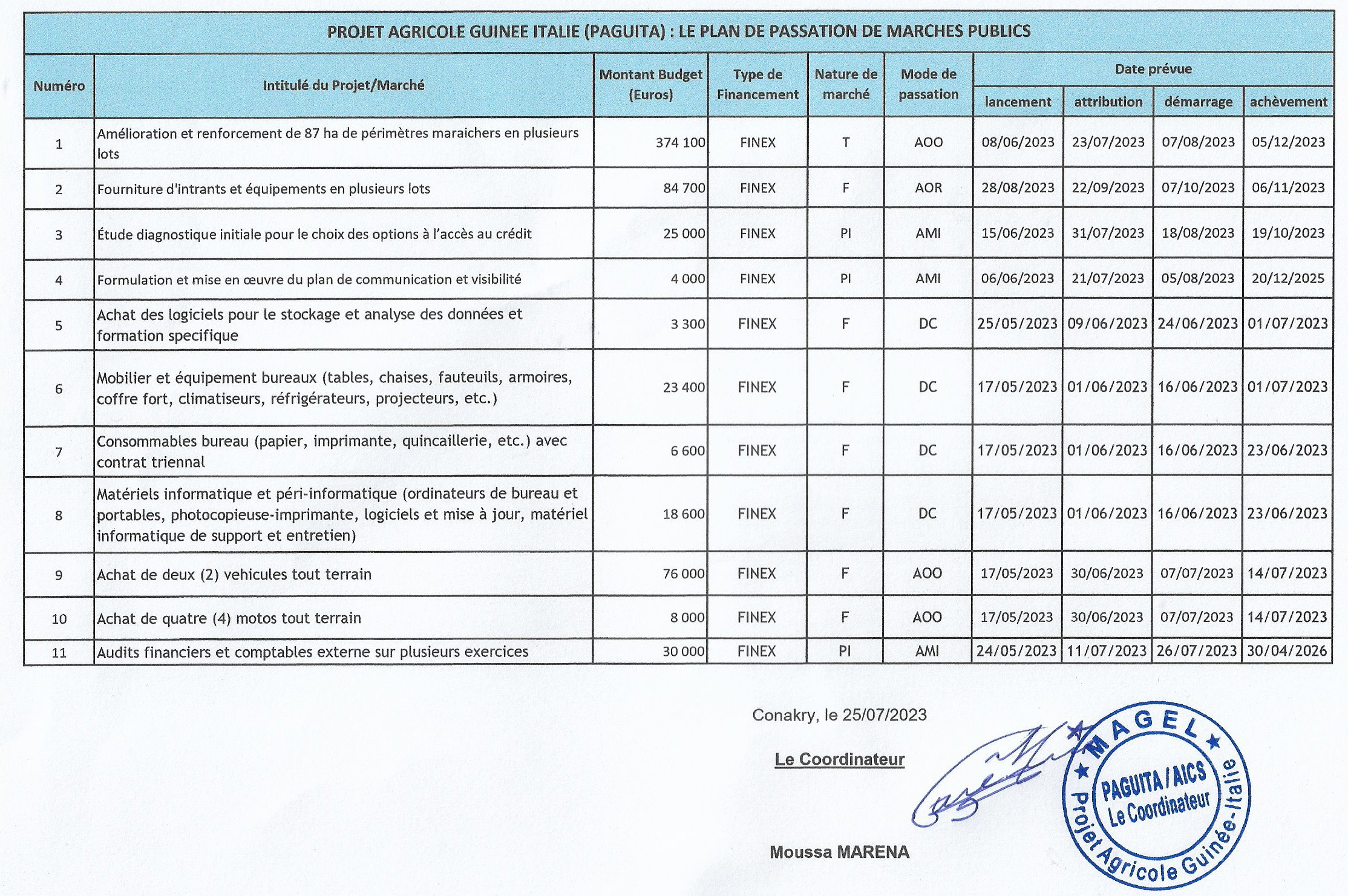 Appels d'offres PLAN DE PASSATION DE MARCHES PUBLICS : PROJET AGRICOLE GUINEE ITALIE (PAGUITA) Par Sékou Mohamed SAVANE - 26 juillet 2023 0 127 FacebookTwitterPinterestWhatsApp