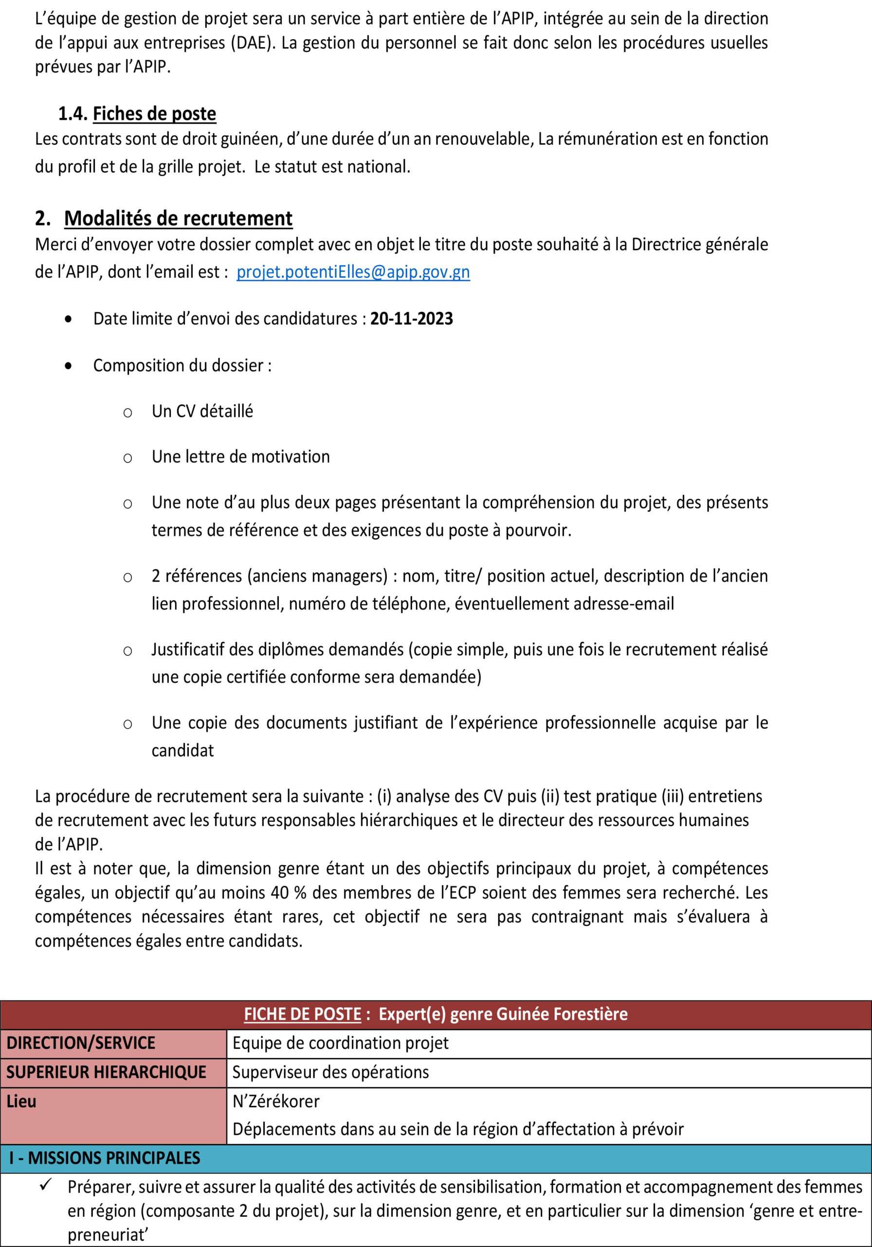 Opportunités d'emplois PUBLICATION DE L’OFFRE DE RECRUTEMENT DE L’EXPERT(E) genre GUINEE Forestière Par Sékou Mohamed SAVANE - 27 octobre 2023 0 814 FacebookTwitterPinterestWhatsApp