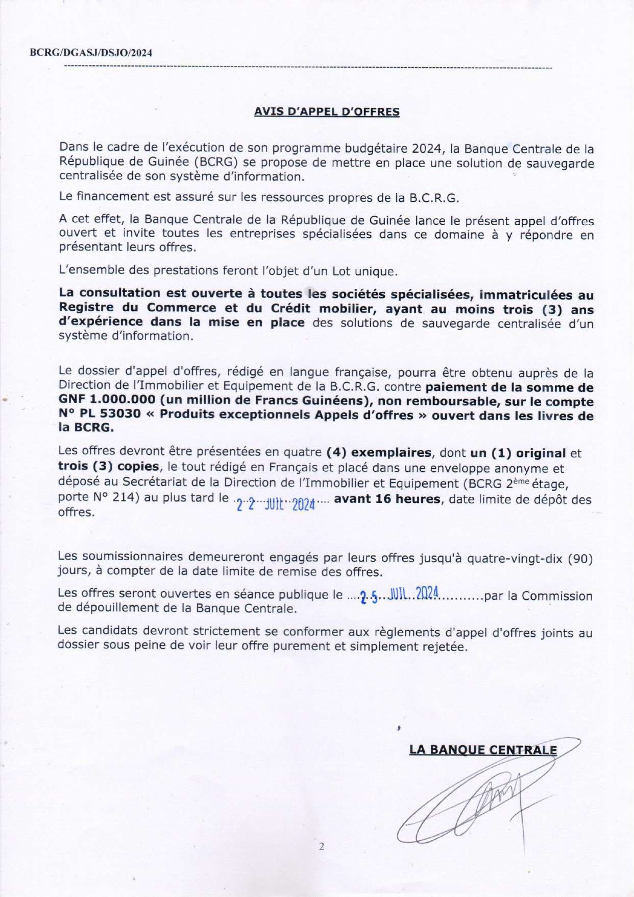 Appels d'offres BCRG : Avis d’Appel d’Offres relatif à mise en place d’une solution de sauvegarde centralisée de son système d’information. Par lesannonces1compte - 10 juin 2024 0 119 FacebookTwitterPinterestWhatsApp