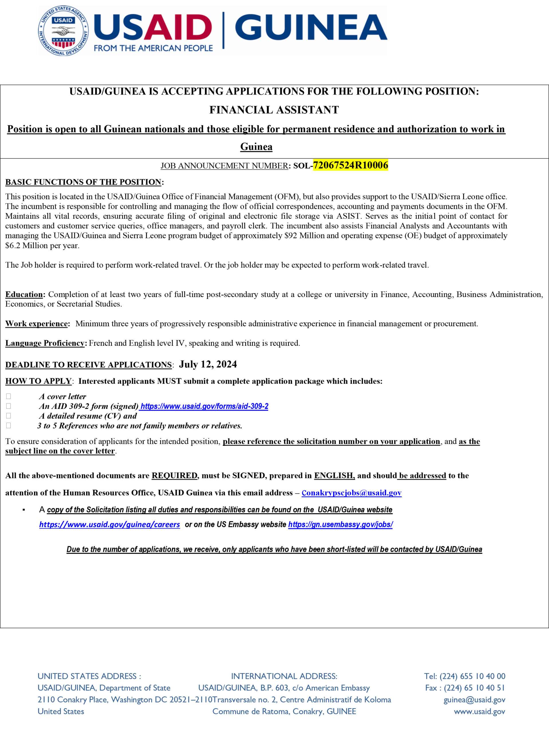 Opportunités d'emplois AVIS DE RECRUTEMENT: FINANCIAL ASSISTANT Par Sékou Mohamed SAVANE - 21 juin 2024 0 139 FacebookTwitterPinterestWhatsApp