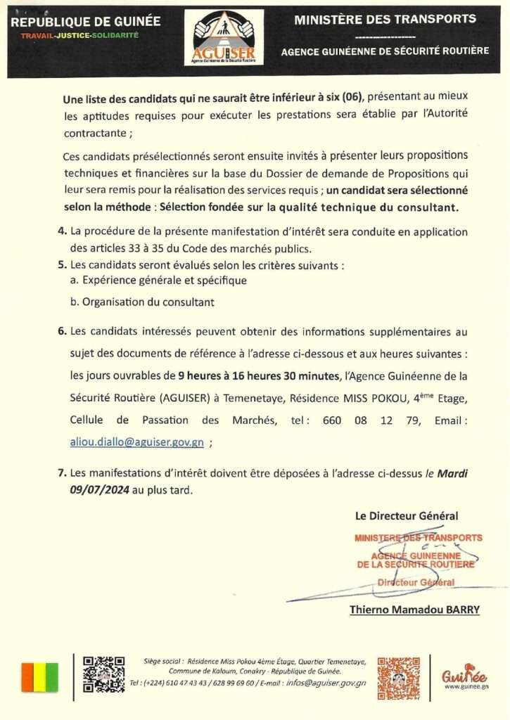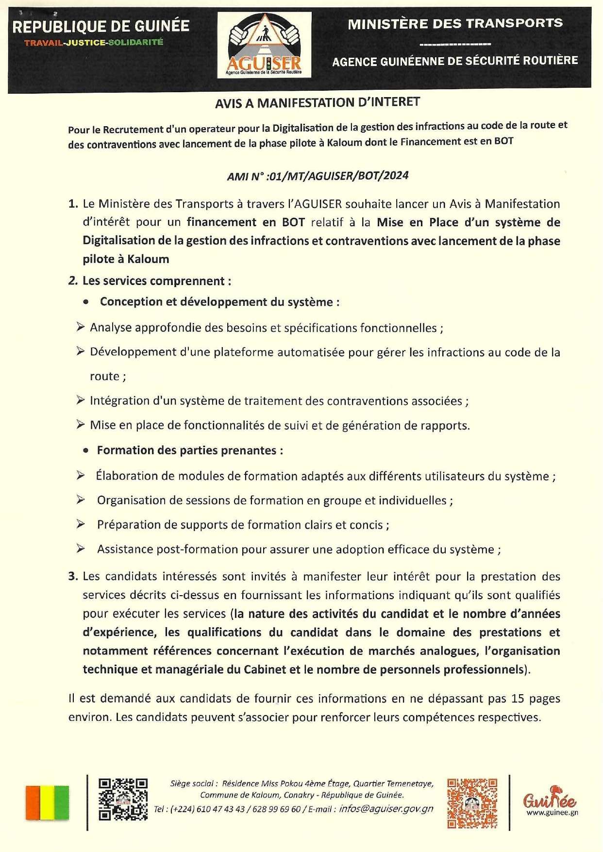 Appels d'offres AVIS A MANIFESTATION D’INTERET POUR LE RECRUTEMENT D’UN OPERATEUR POUR LA DIGITALISATION DE…… Par Sékou Mohamed SAVANE - 25 juin 2024 0 200 FacebookTwitterPinterestWhatsApp