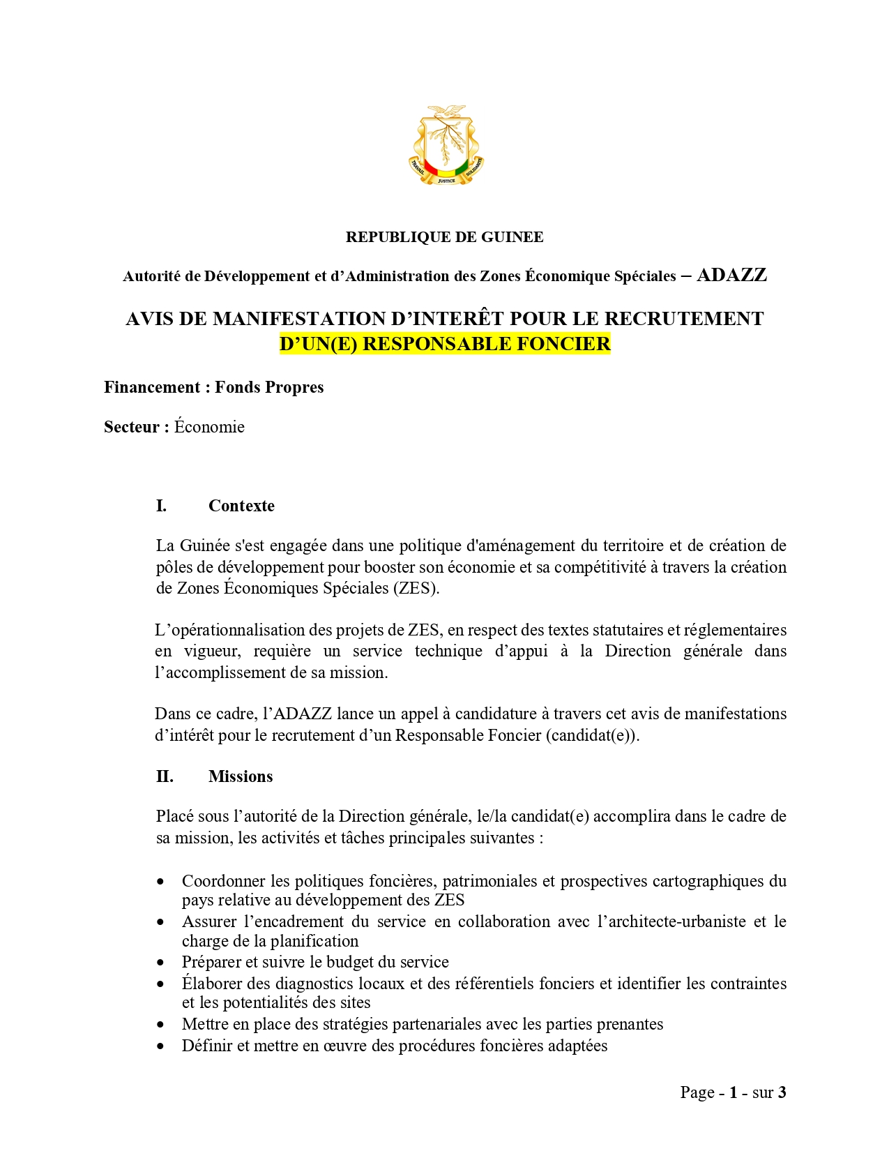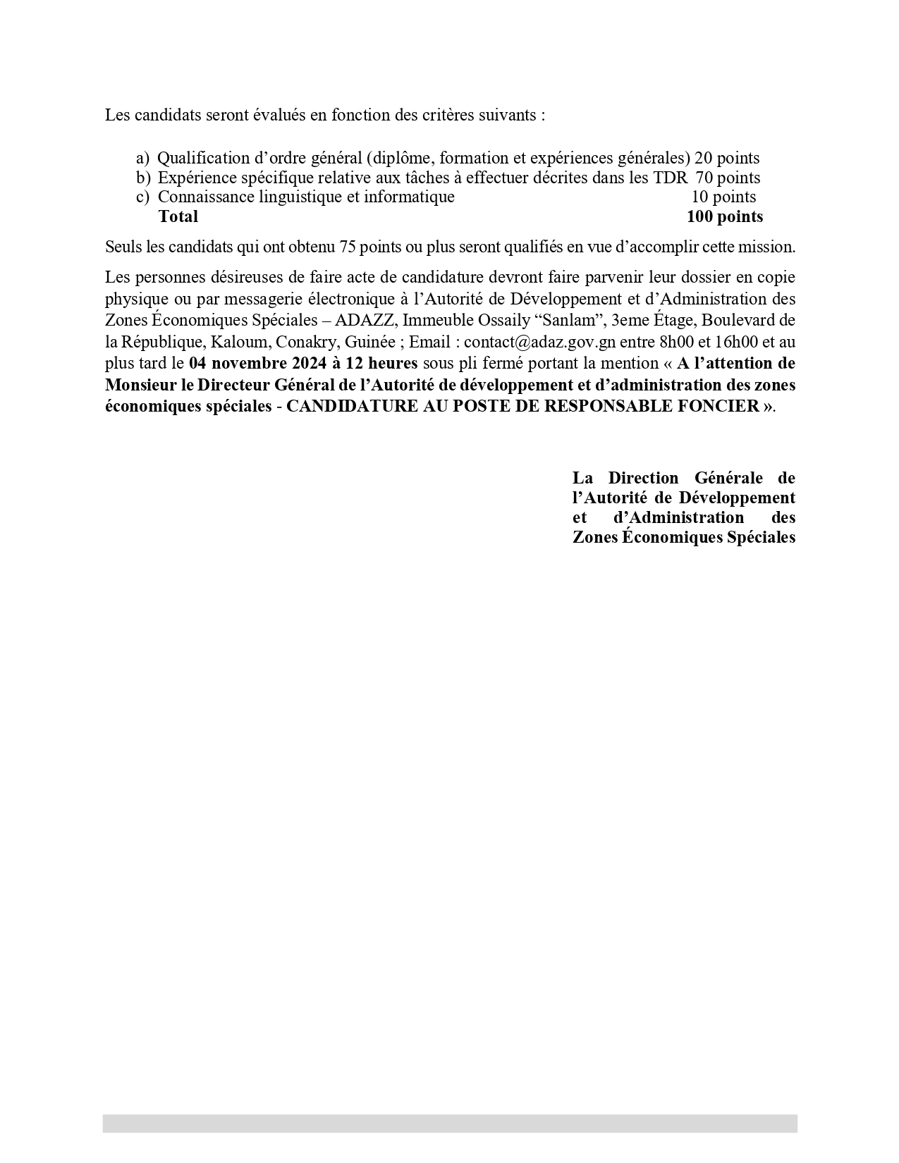 Opportunités d'emplois ADAZZ: AVIS DE MANIFESTATION DâINTERÃT POUR LE RECRUTEMENT DâUN(E) RESPONSABLE FONCIER Par Sékou Mohamed SAVANE - 21 octobre 2024 0 75 FacebookTwitterPinterestWhatsApp