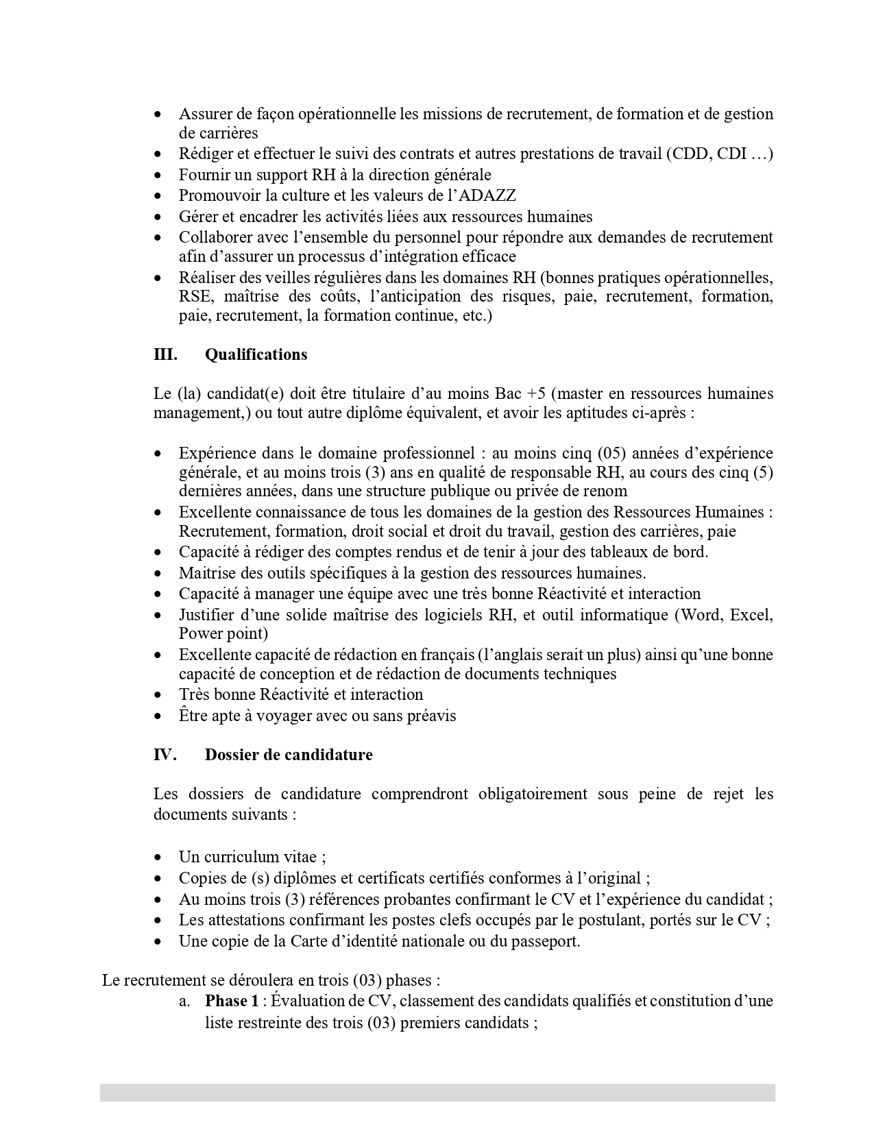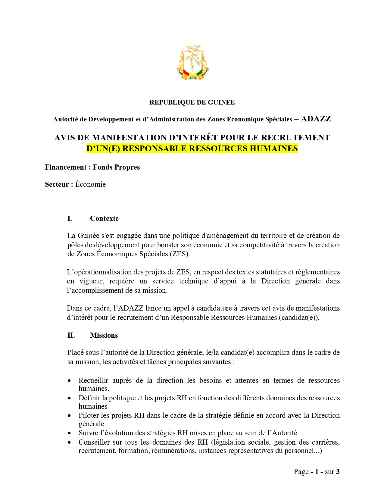 Opportunités d'emplois ADAZZ: AVIS DE MANIFESTATION DâINTERÃT POUR LE RECRUTEMENT DâUN(E) RESPONSABLE RESSOURCES HUMAINES Par Sékou Mohamed SAVANE - 21 octobre 2024 0 74 FacebookTwitterPinterestWhatsApp