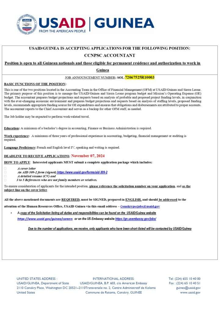 Opportunités d'emplois AVIS DE RECRUTEMENT D’UN CCNPSC ACCOUNTANT Par Sékou Mohamed SAVANE - 21 octobre 2024 0 154 FacebookTwitterPinterestWhatsApp
