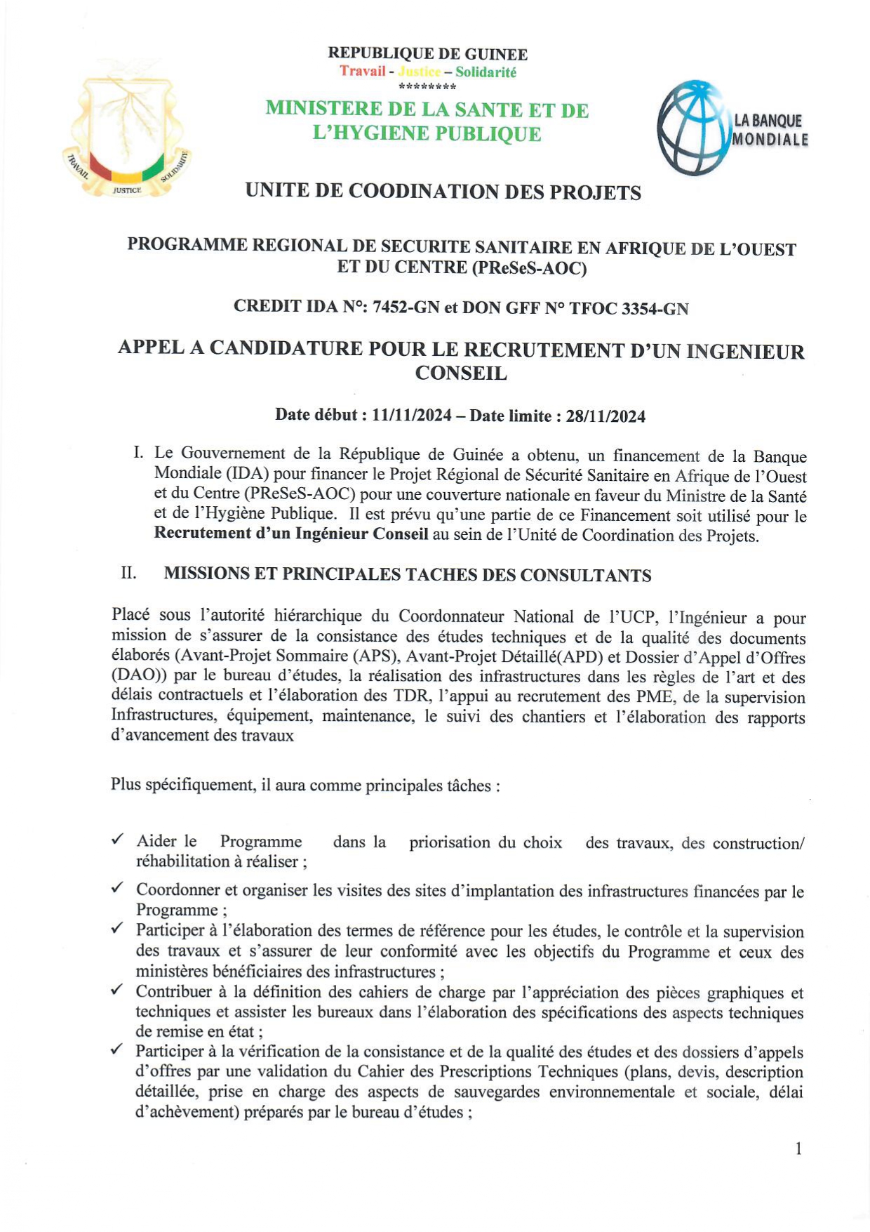 Opportunités d'emplois PReSeS-AOC : APPEL A CANDIDATURE POUR LE RECRUTEMENT DâUN INGENIEUR CONSEIL Par Sékou Mohamed SAVANE - 11 novembre 2024 0 46 FacebookTwitterPinterestWhatsApp TELECHARGEZ L’AVIS COMPLET ICIhttps://www.lesannonces.net