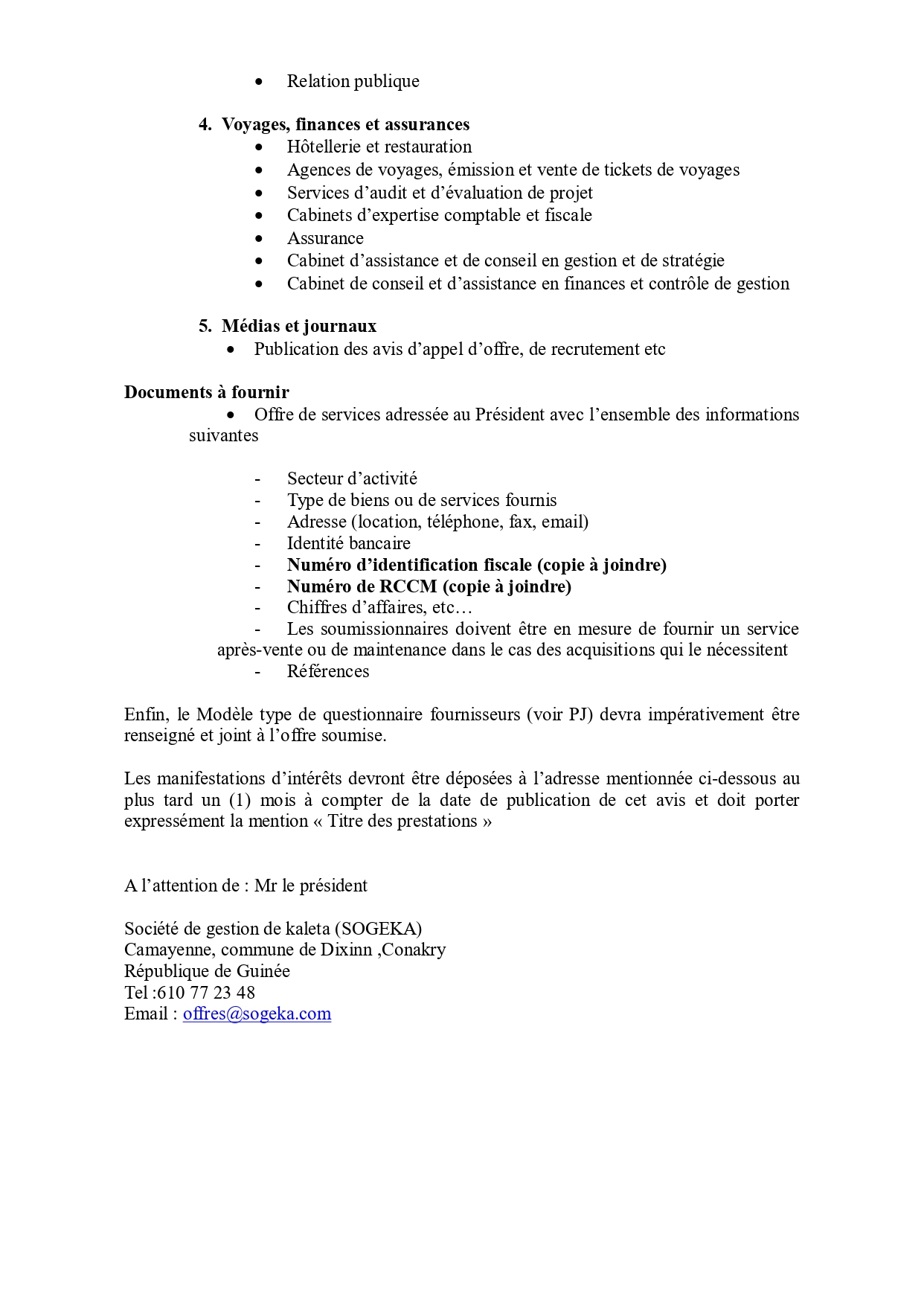 Appels d'offres APPEL A MANIFESTATION DâINTERET POUR LA FOURNITURE DE BIENS, DE TRAVAUX OU DE SERVICES Par Sékou Mohamed SAVANE - 12 novembre 2024 0 52 FacebookTwitterPinterestWhatsApp