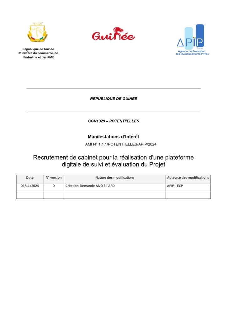 Accueil Appels d'offres AVIS DE RECRUTEMENT DE CABINET POUR LA REALISATION D’UNE PLATEFORME DIGITALE DE...