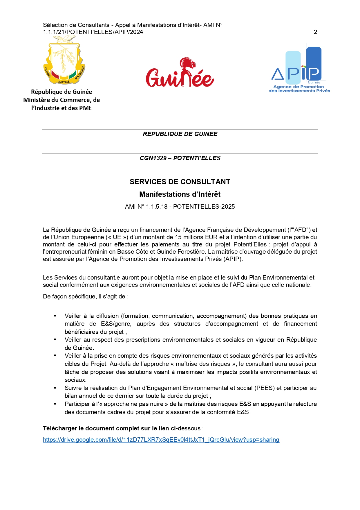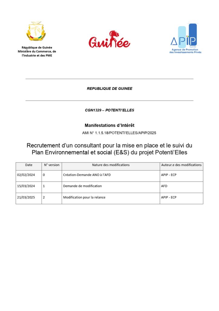 Accueil Appels d'offres PUBLICATION DE L’AMI Recrutement d’un consultant pour la mise en place et...