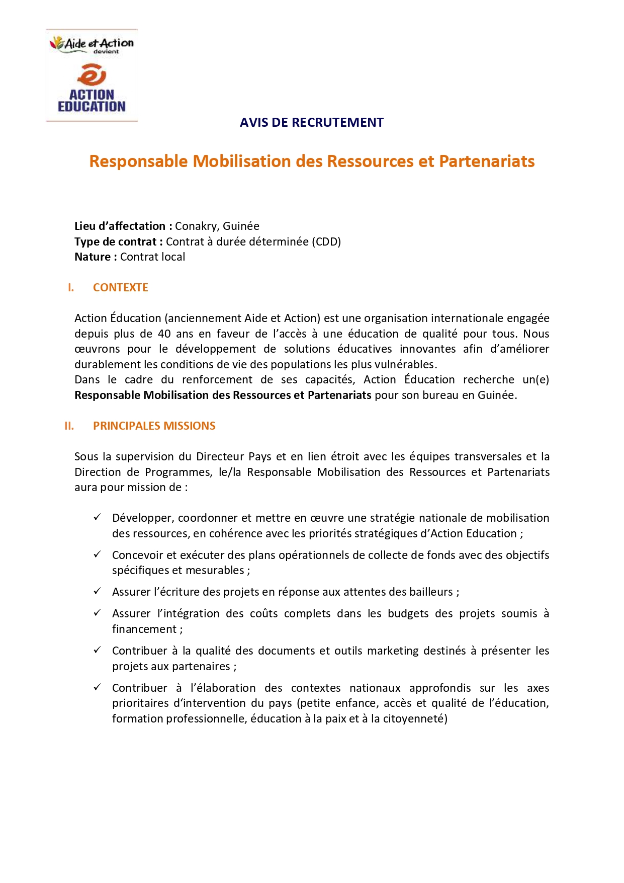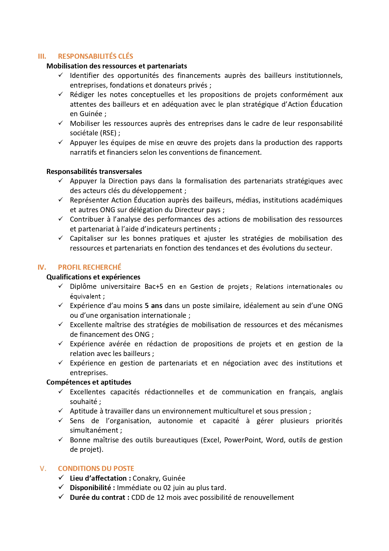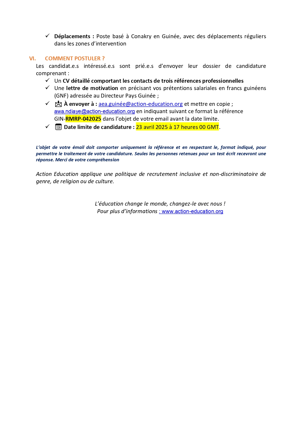 Opportunités d'emplois AVIS DE RECRUTEMENT D’un Responsable Mobilisation des Ressources et Partenariats Par Sékou Mohamed SAVANE - 14 avril 2025 0 64 FacebookTwitterPinterestWhatsApp