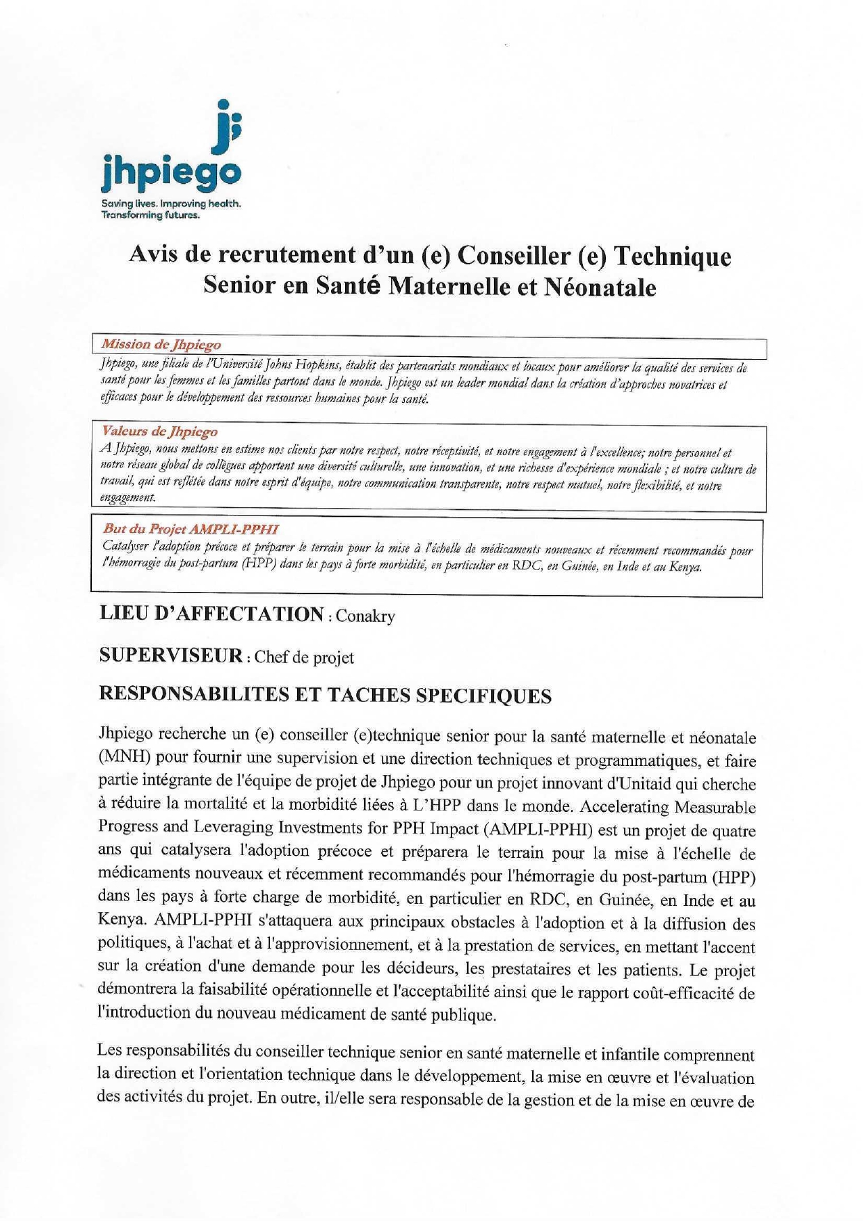 Opportunités d'emplois Avis de recrutement d’un (e) Conseiller (e) Technique Senior en Santé Maternelle et Néonatale Par Sékou Mohamed SAVANE - 4 août 2025 0 35 FacebookTwitterPinterestWhatsApp Télécharger l’avis complet en PDF