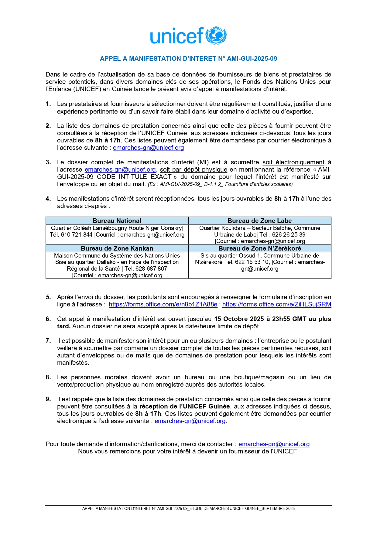 Appels d'offres Actualisation de sa base de données de fournisseurs de biens et prestataires de service potentiels Par Sékou Mohamed SAVANE - 19 septembre 2025 0 18 FacebookTwitterPinterestWhatsApp
